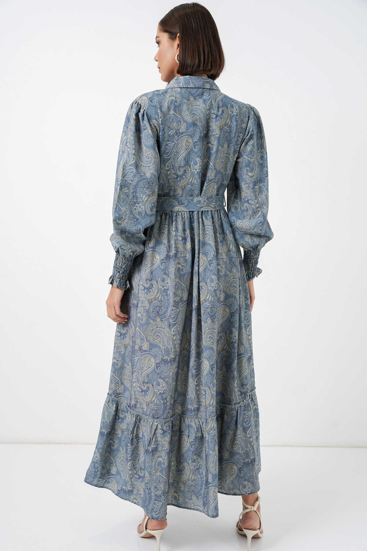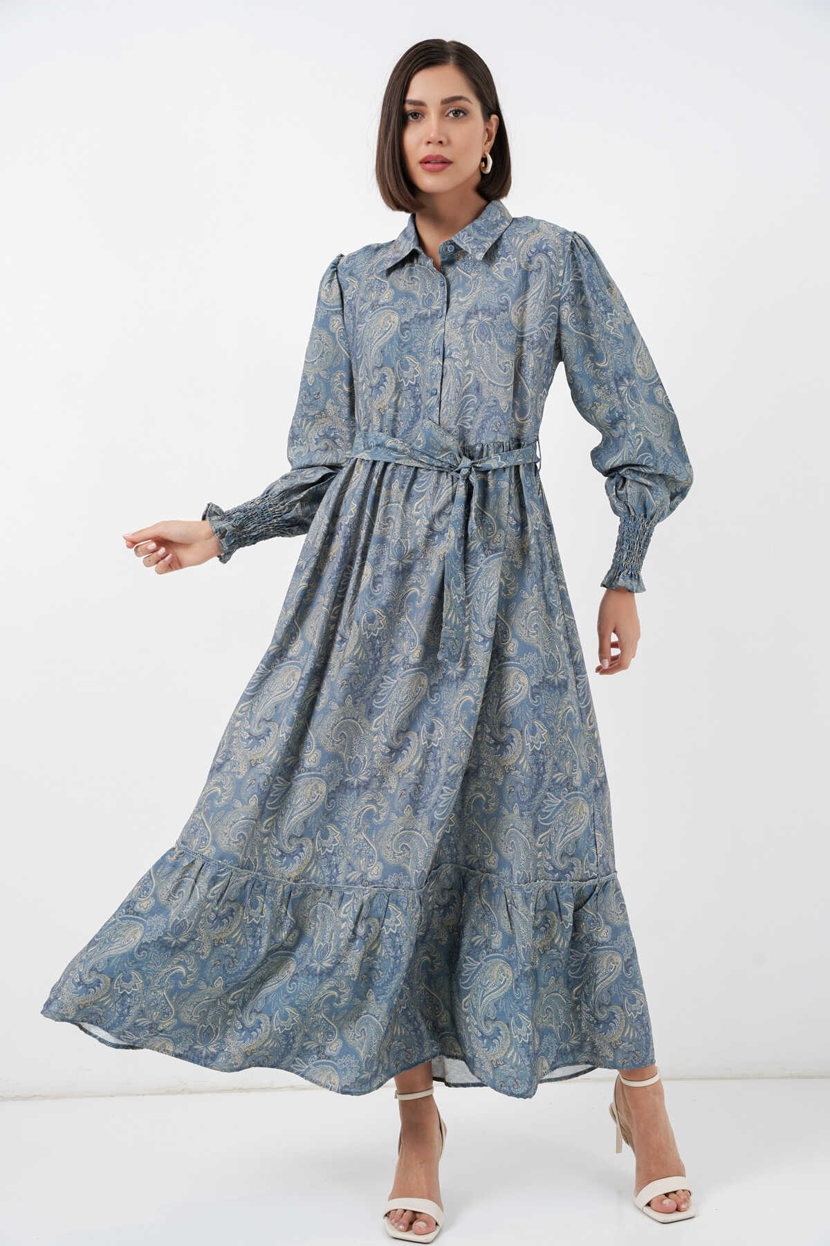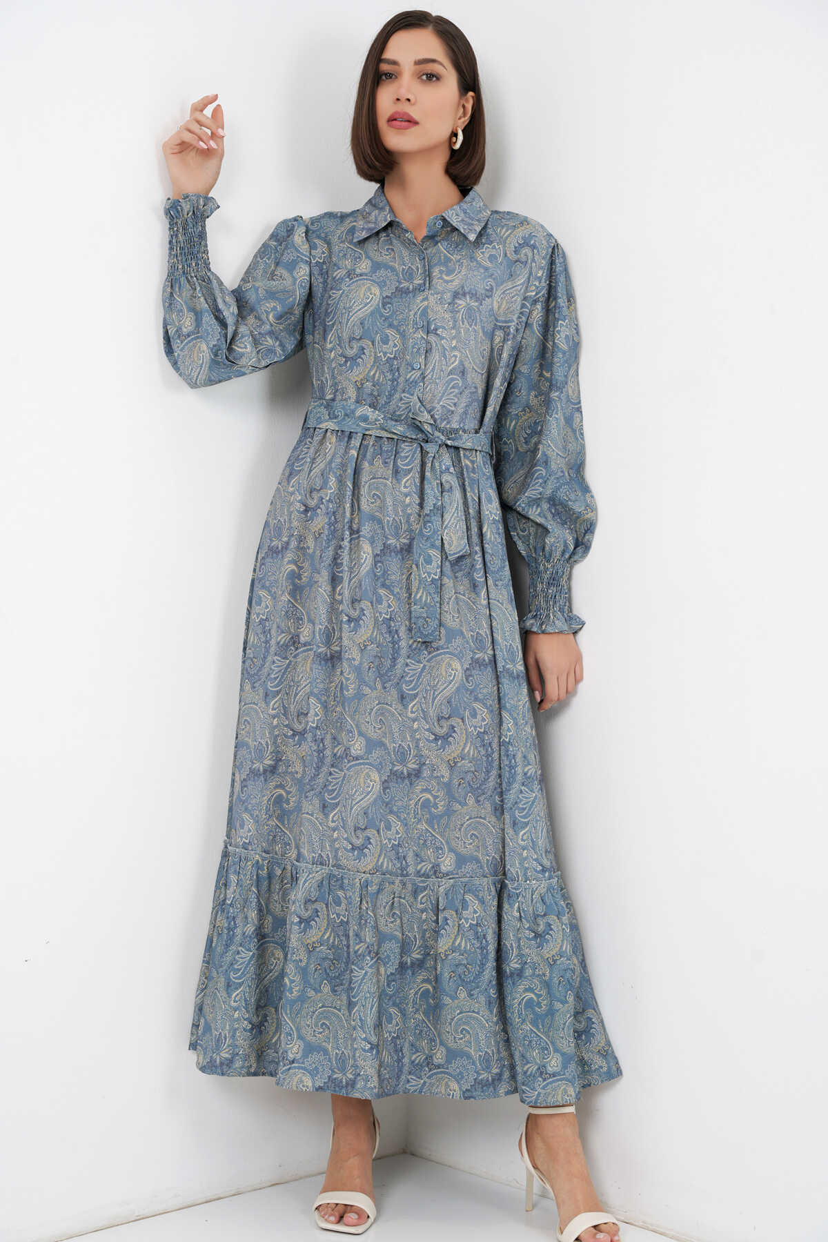 Kadın Kuşaklı Tesettür Elbise 2589 - Mint - Kombin
