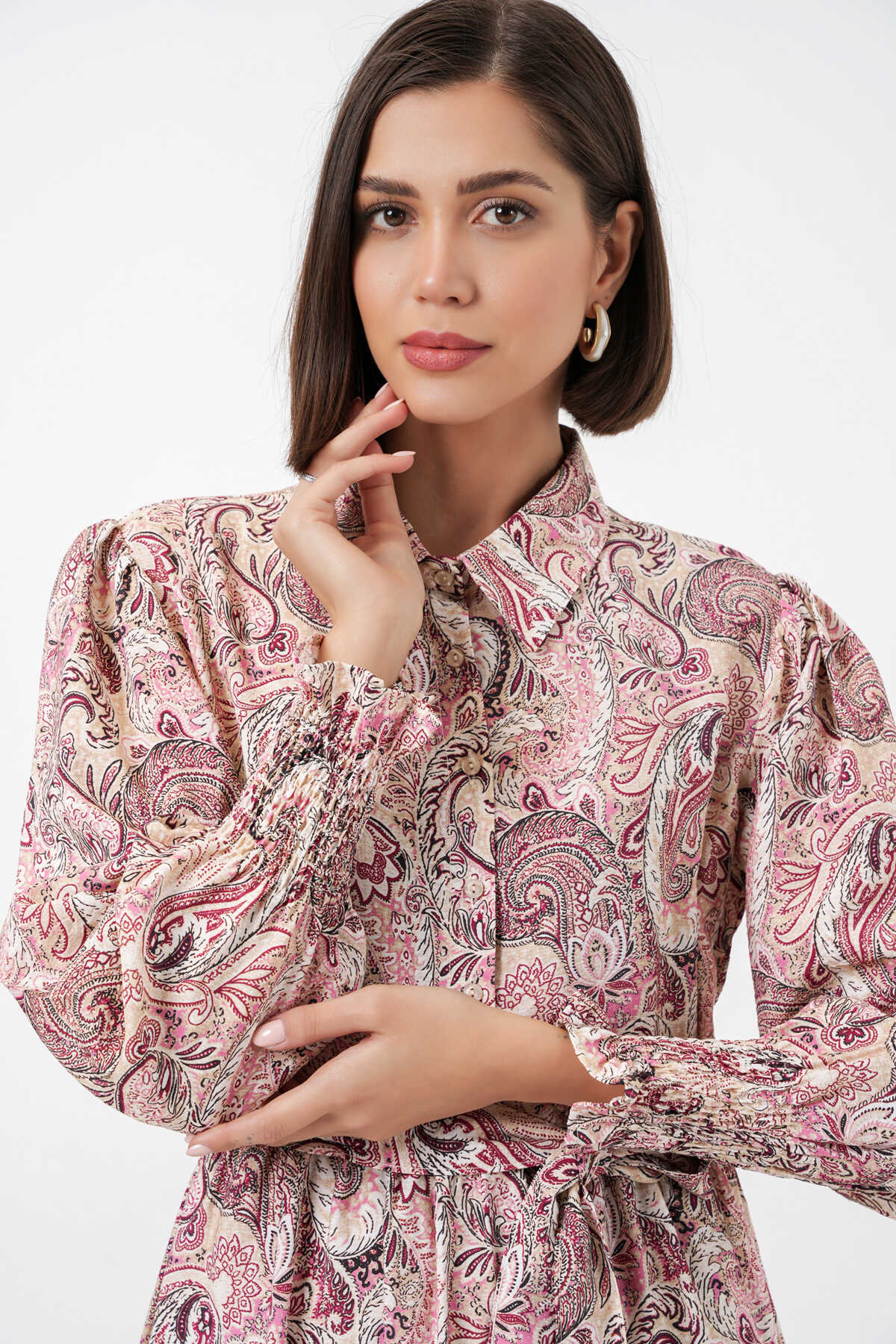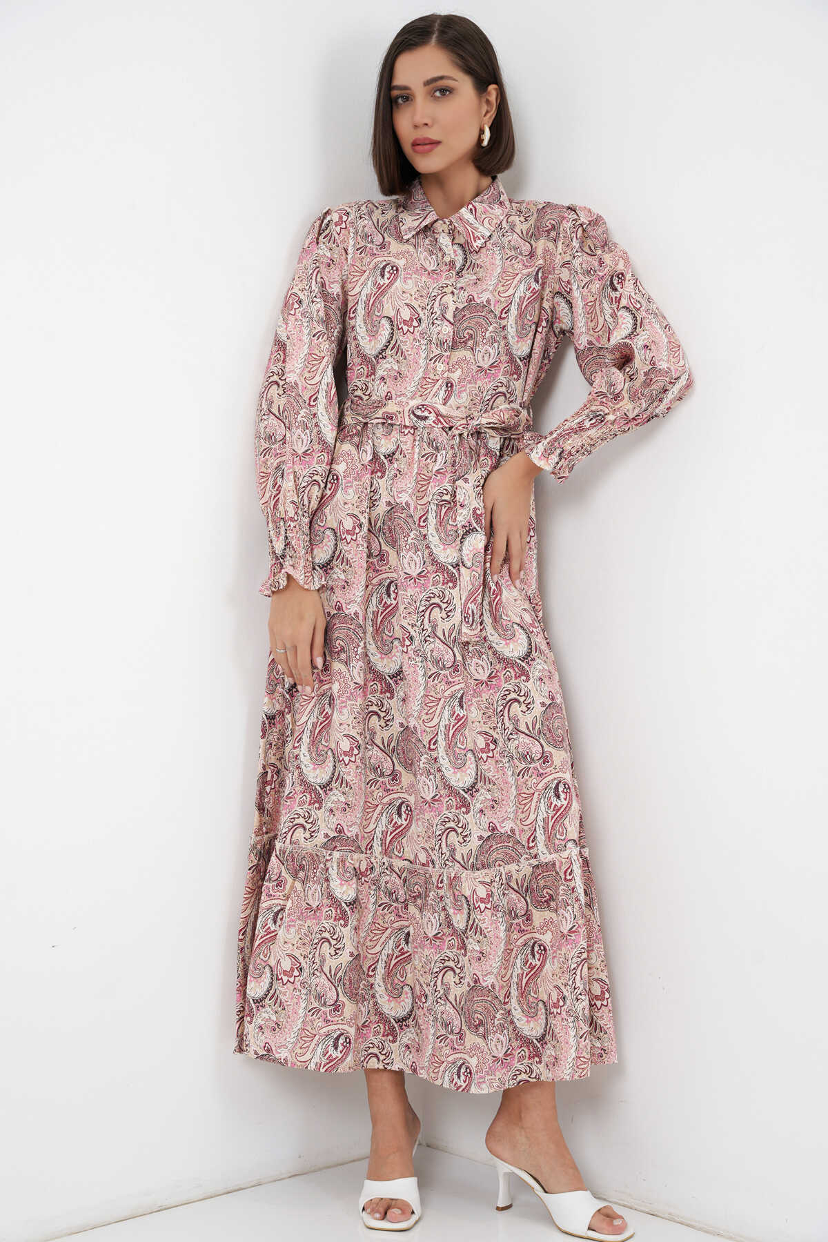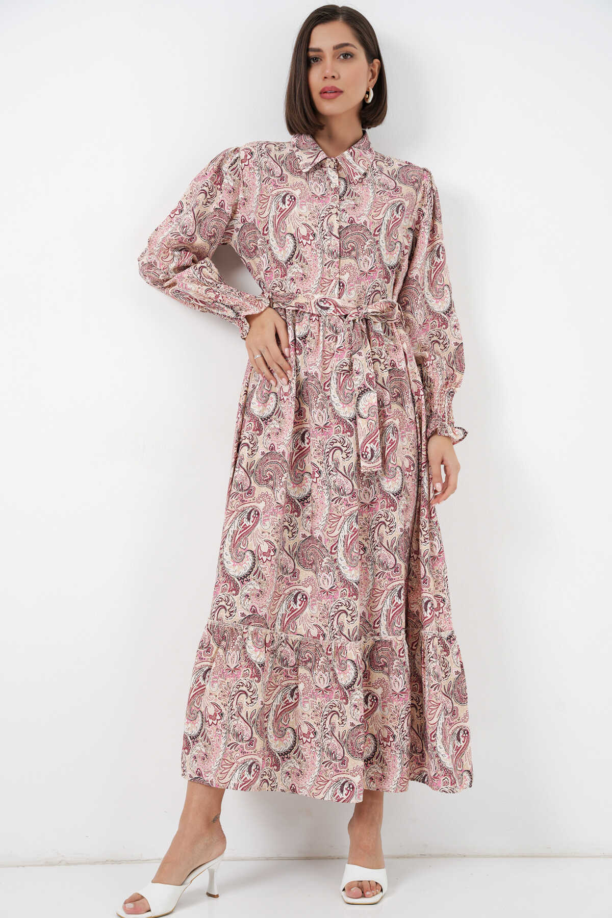 Kadın Kuşaklı Tesettür Elbise 2589 - Pembe - Kombin