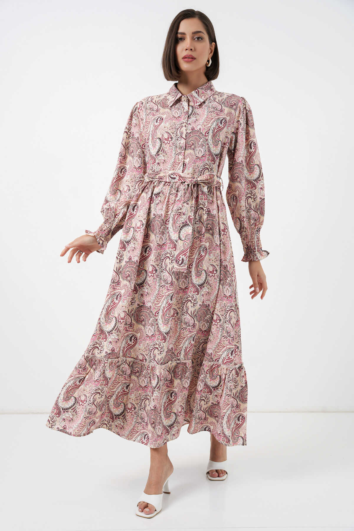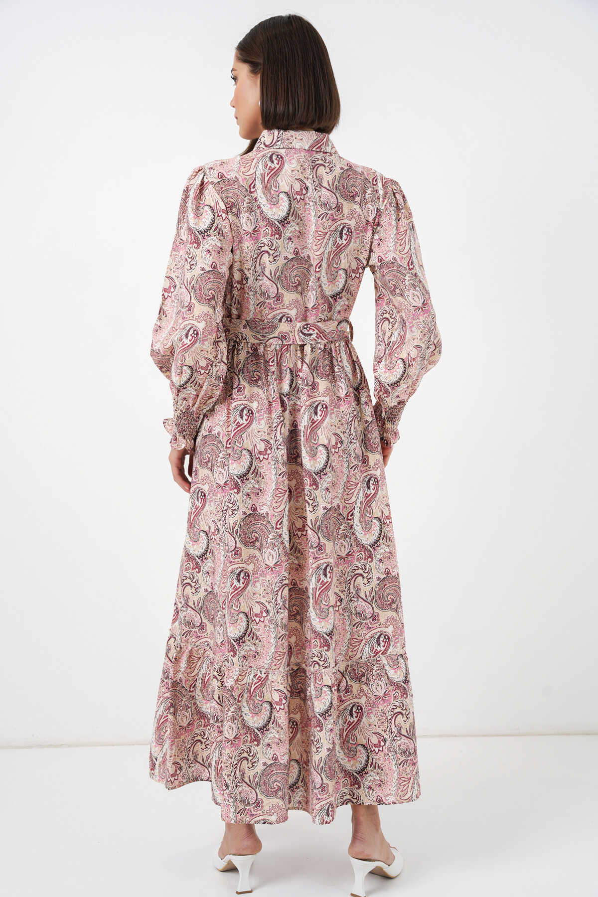 Kadın Kuşaklı Tesettür Elbise 2589 - Pembe