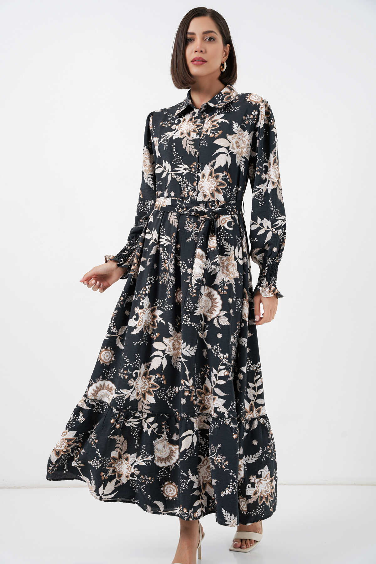 Kadın Kuşaklı Tesettür Elbise 2589 - Y.Siyah - Kombin