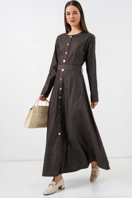 Kadın Kuşaklı Uzun Denim Elbise 2595 - Füme