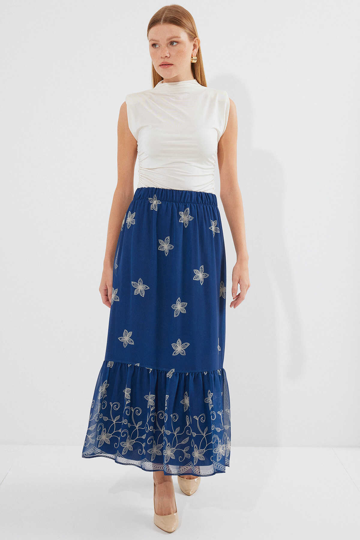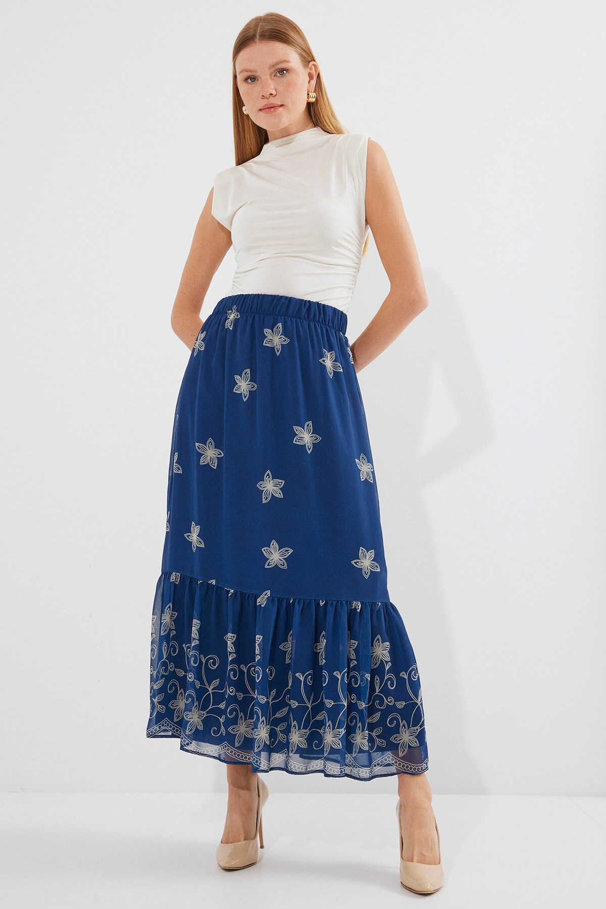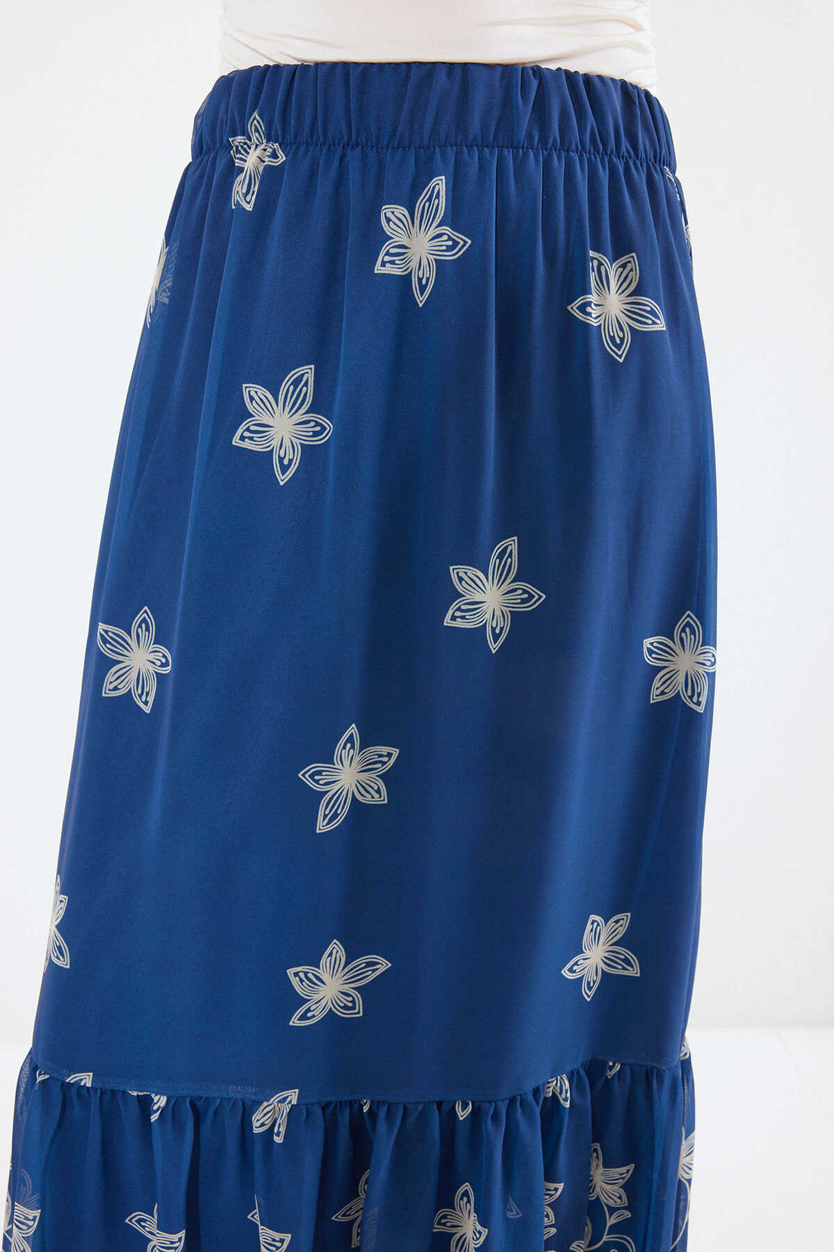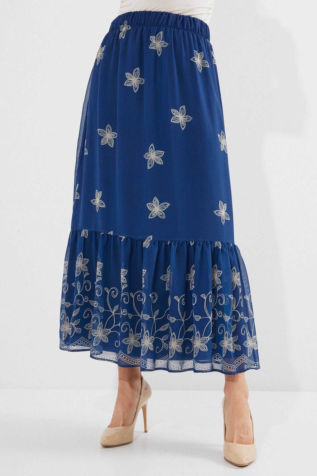 Kadın Lacivert Desenli Şifon Etek 8010 - Kombin