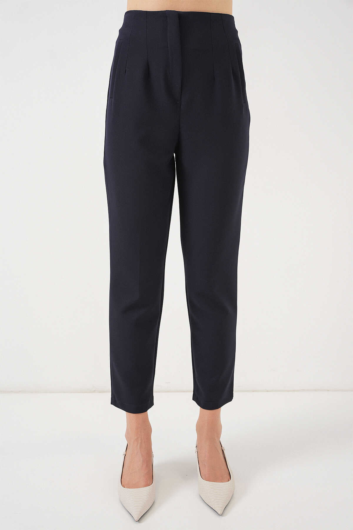 Kadın Lacivert Yüksek Bel Kumaş Pantolon 6650 - Kombin