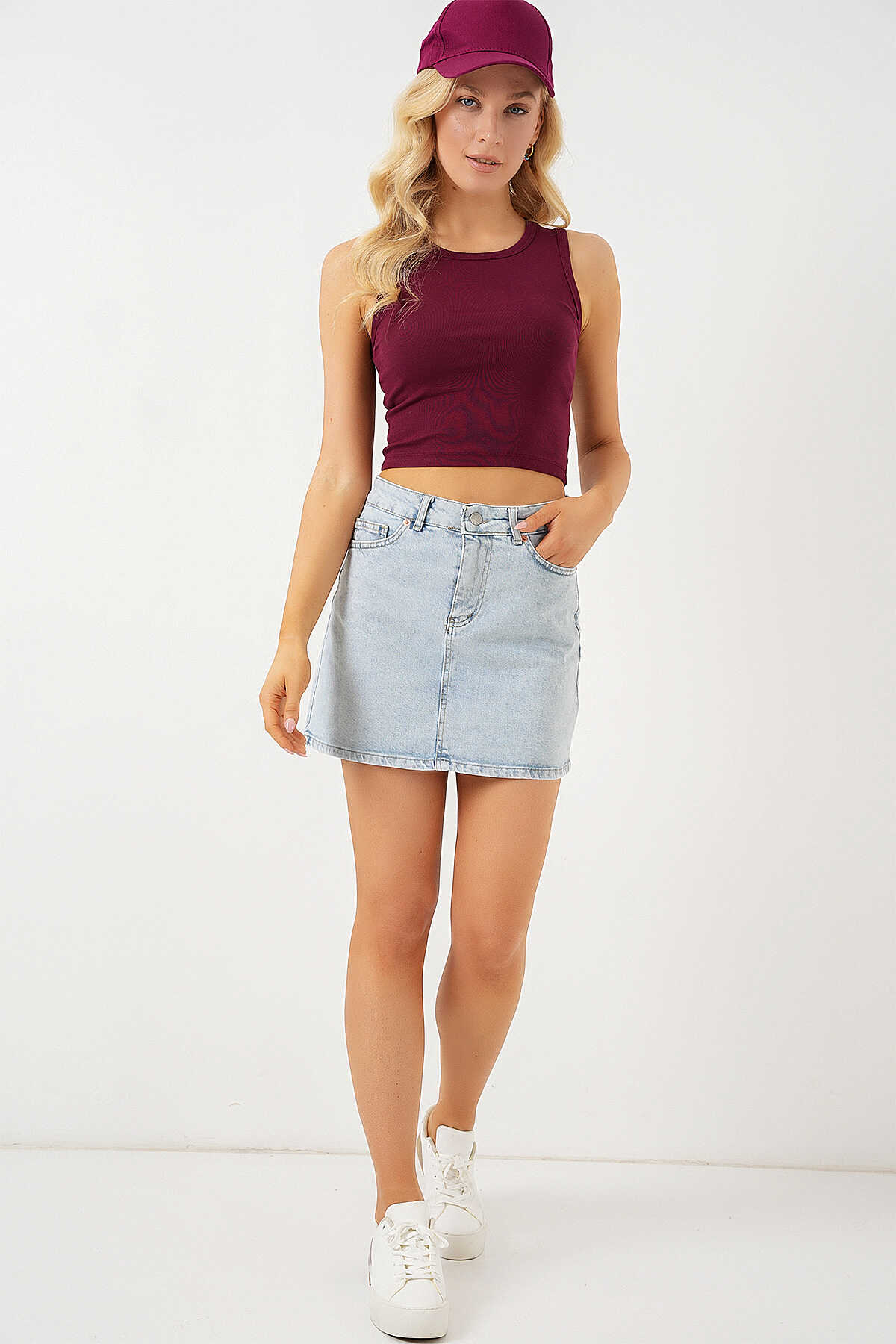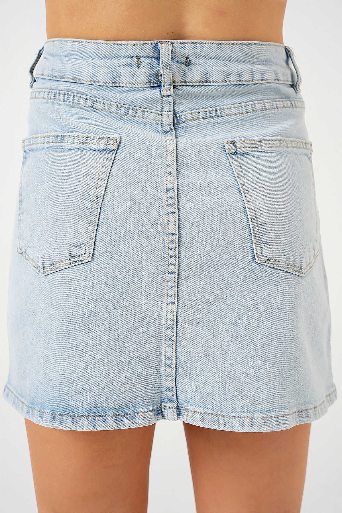 Kadın Mini Kot Etek 8049 - Mavi - Kombin