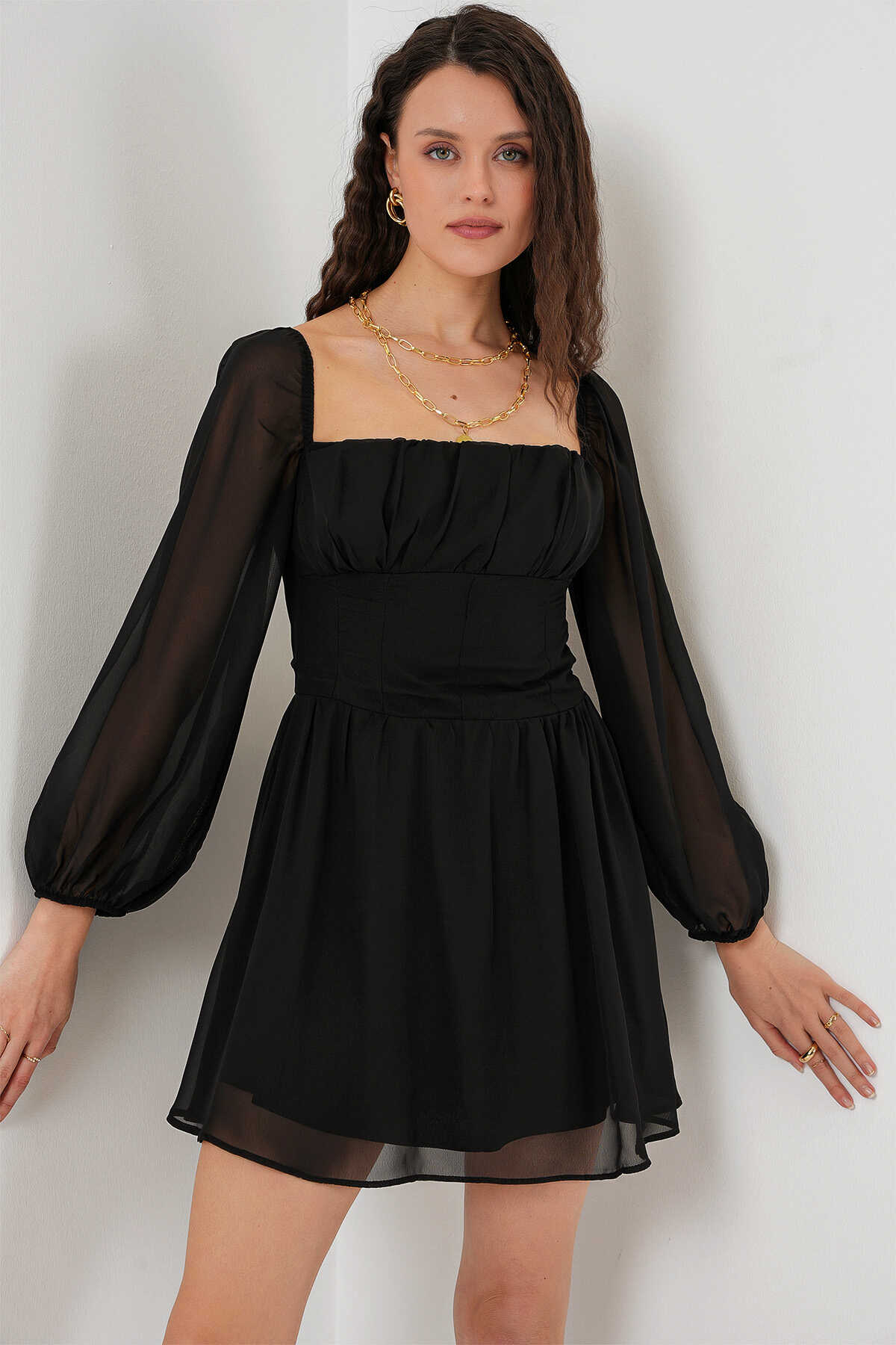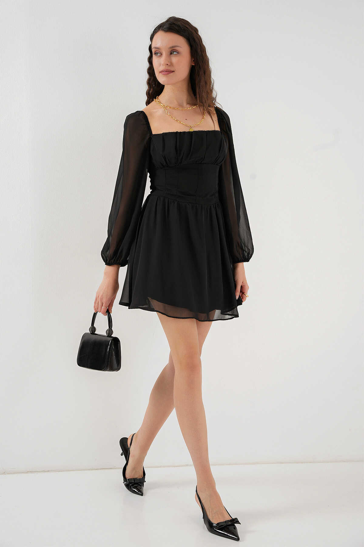 Kadın Mini Tül Elbise 2514 - Siyah - Kombin