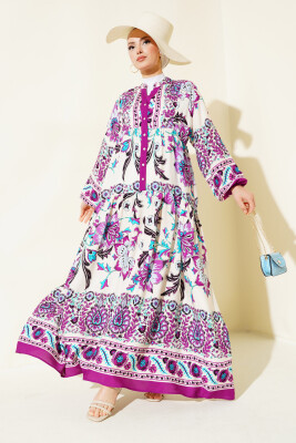 Kadın Mürdüm Krem Viskon Tesettür Elbise 2423