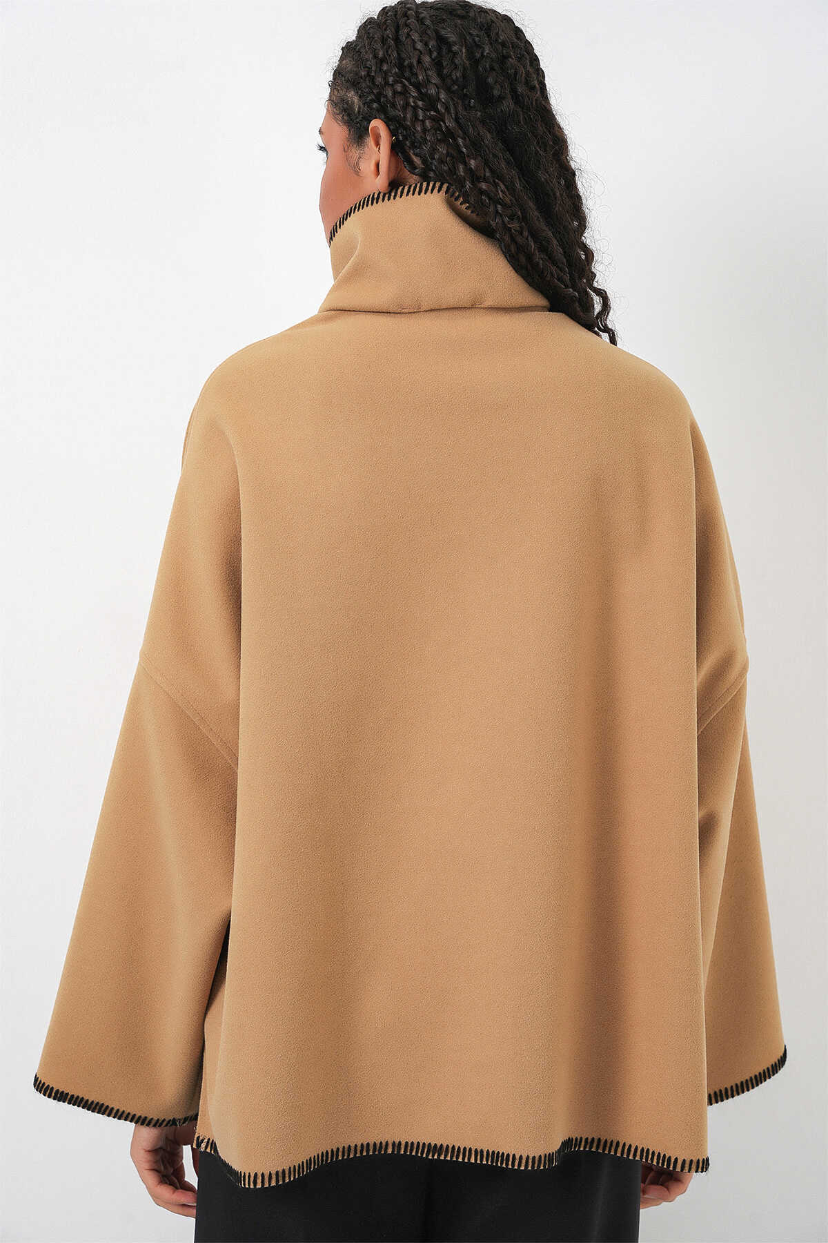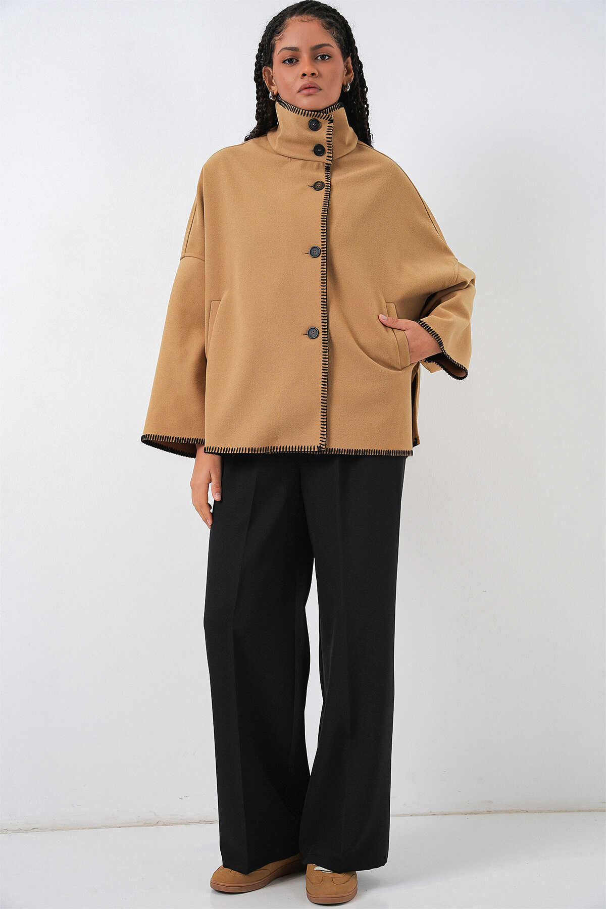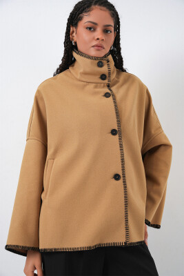 Kadın Nakışlı Kaşe Ceket 9167 - Hardal - Kombin