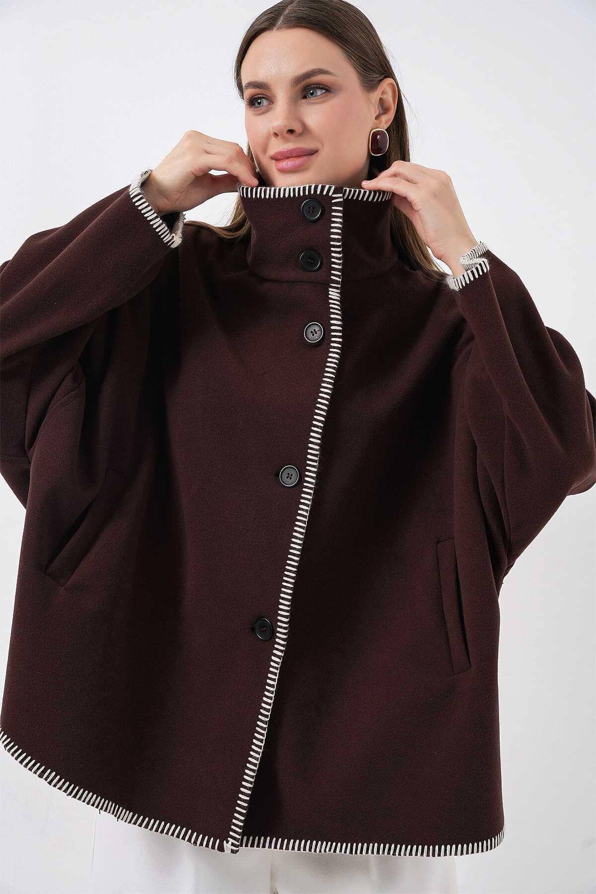 Kadın Nakışlı Kaşe Ceket 9167 - Kahverengi - Kombin