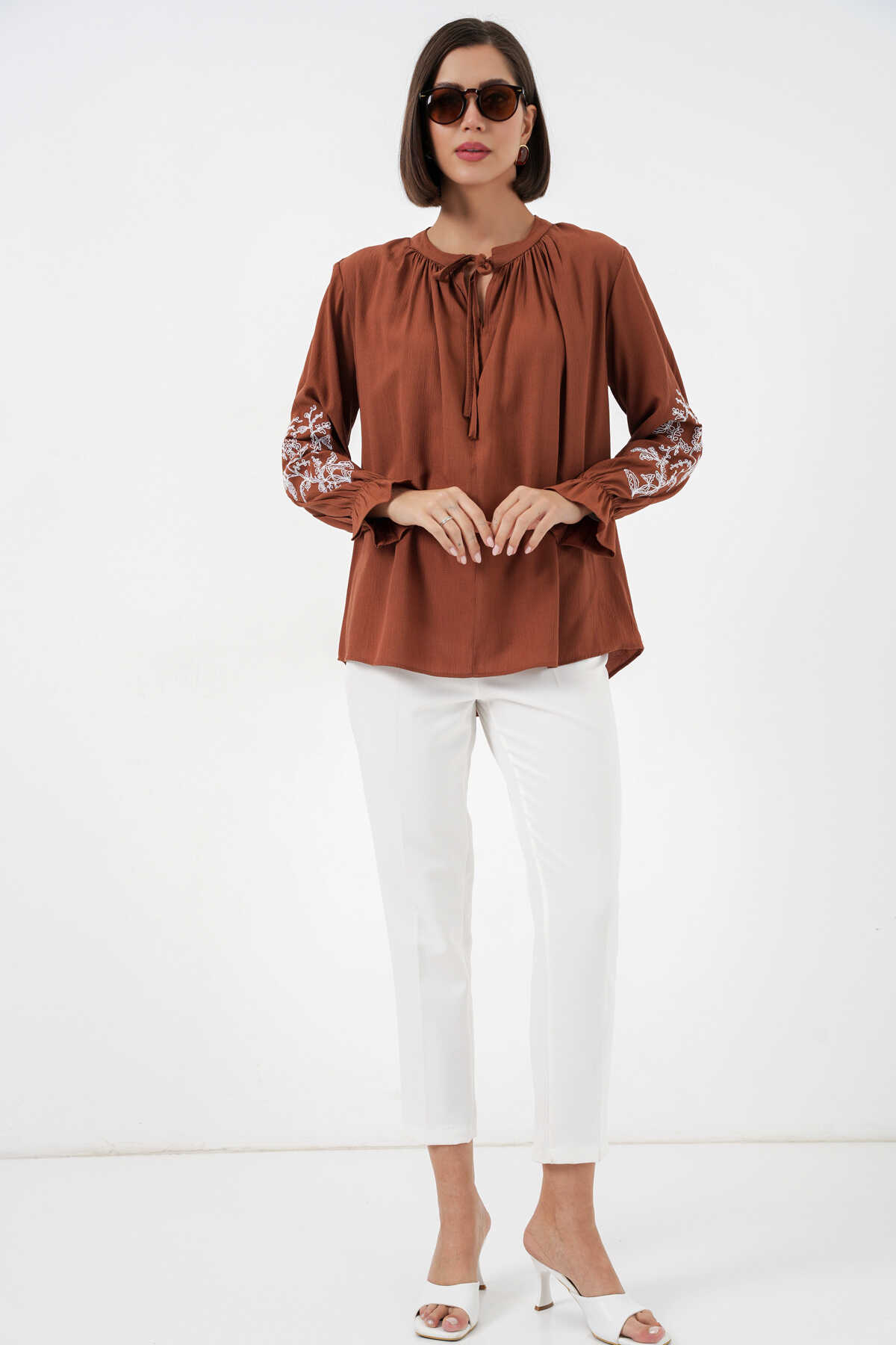 Kadın Nakışlı Örme Bluz 941 - Kiremit - Kombin