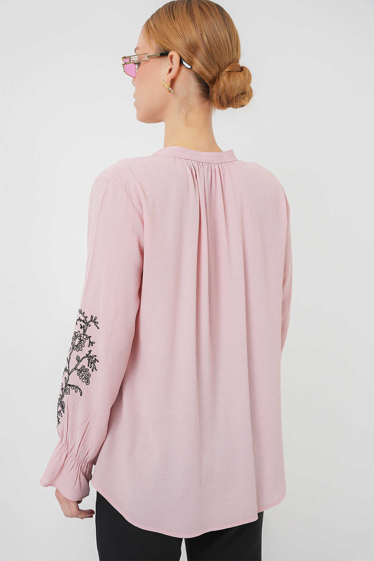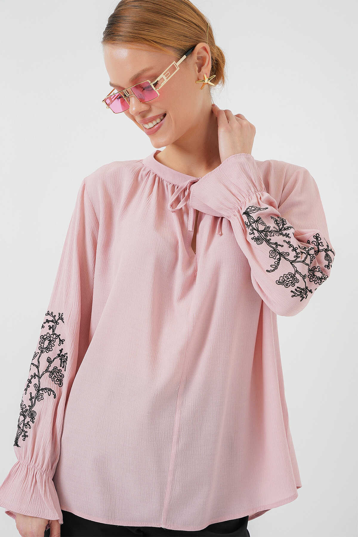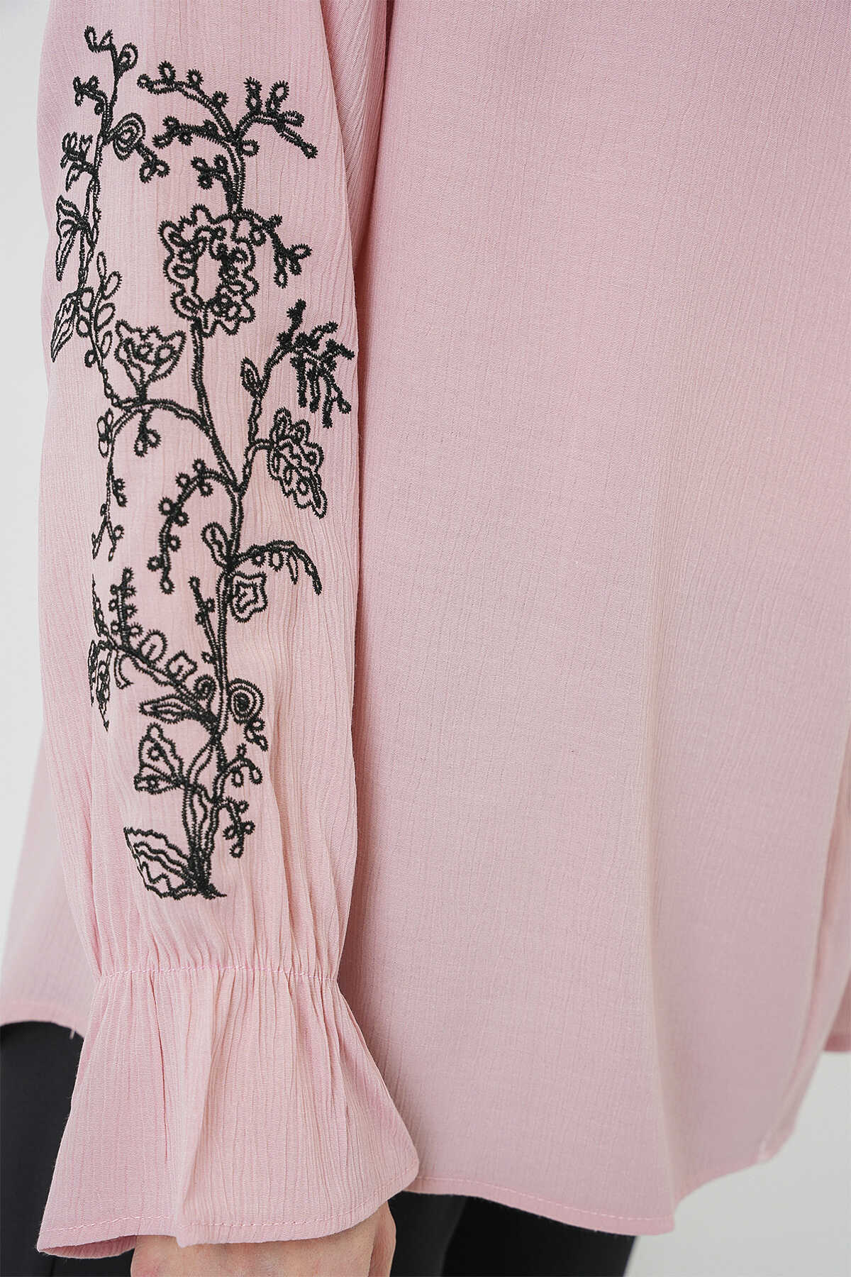 Kadın Nakışlı Örme Bluz 941 - Pudra