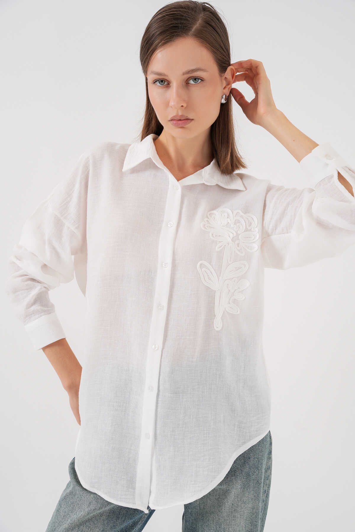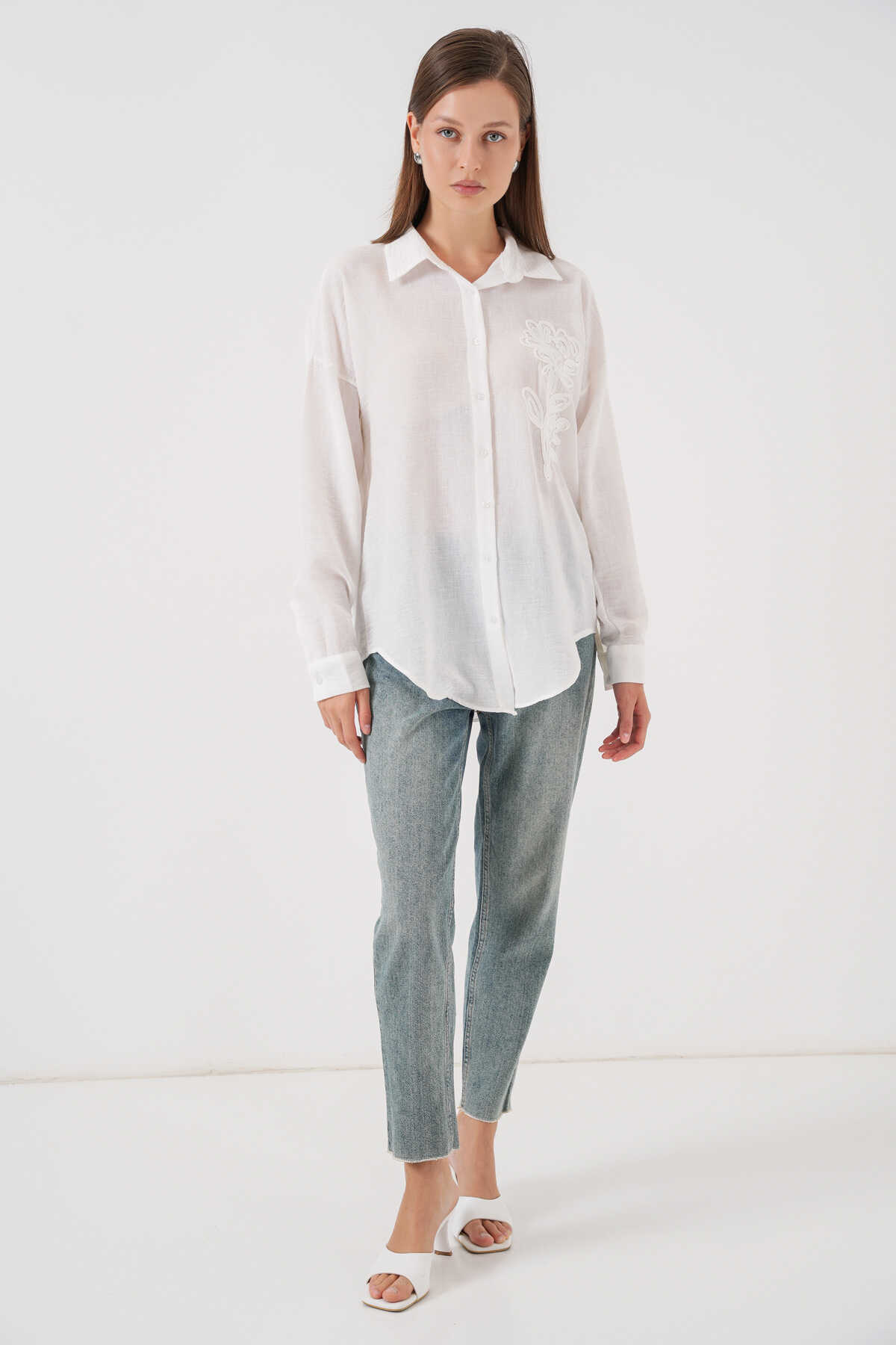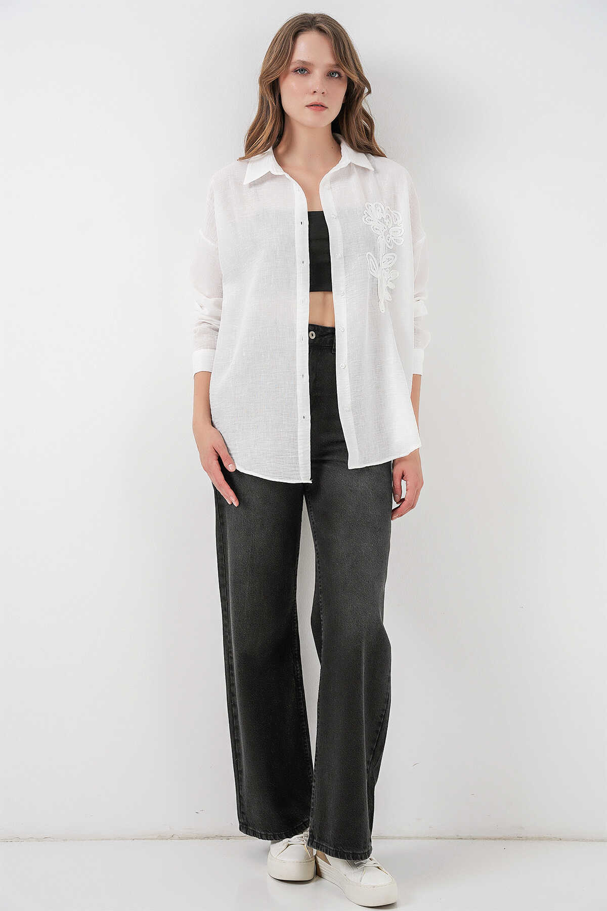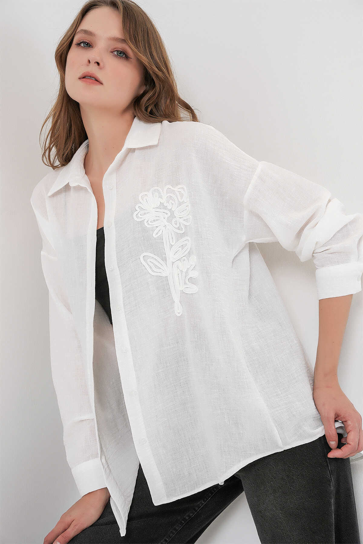 Kadin Nakisli Oversize Gömlek