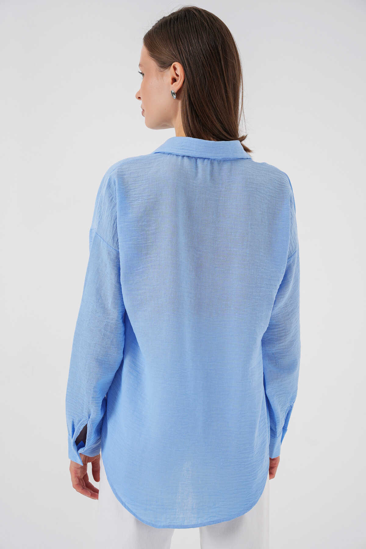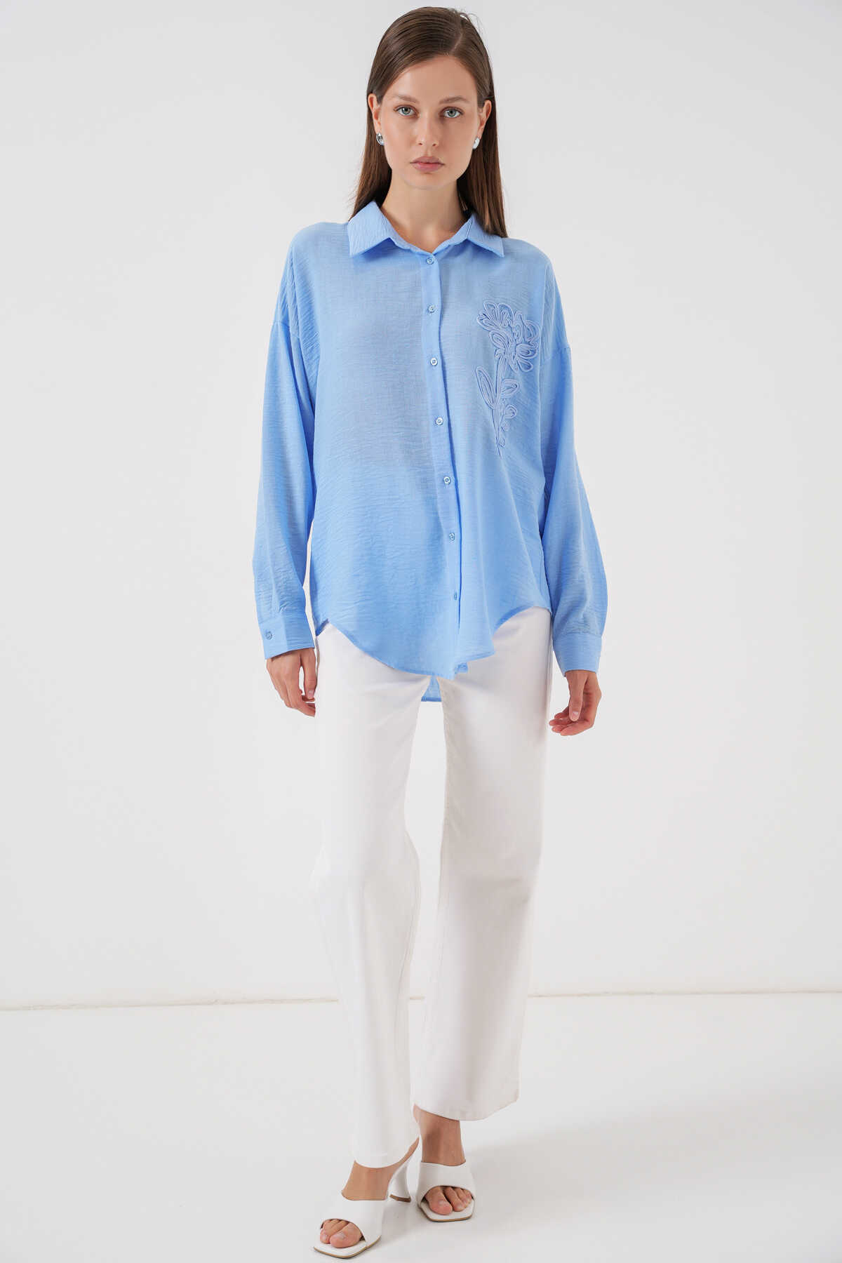 Kadın Nakışlı Oversize Gömlek 20338 - Mavi - Kombin