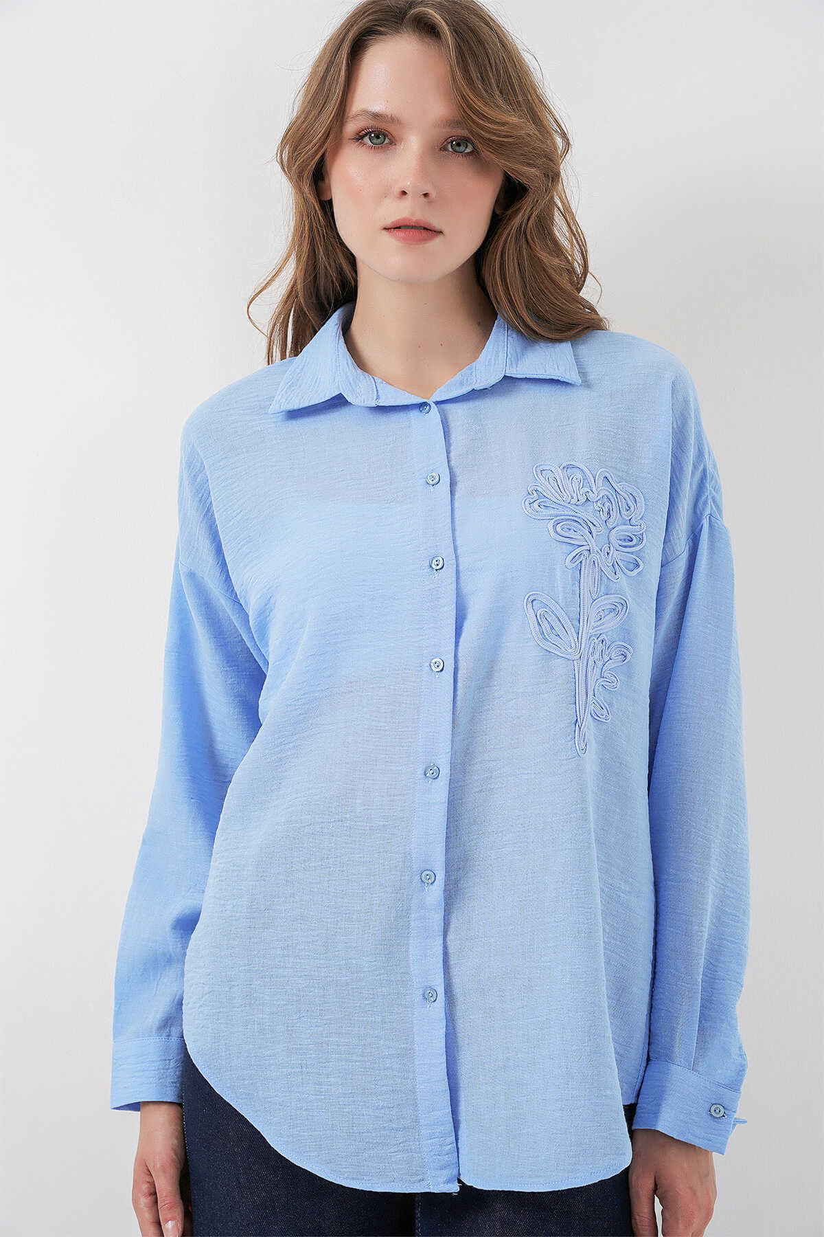 Kadin Nakisli Oversize Gömlek