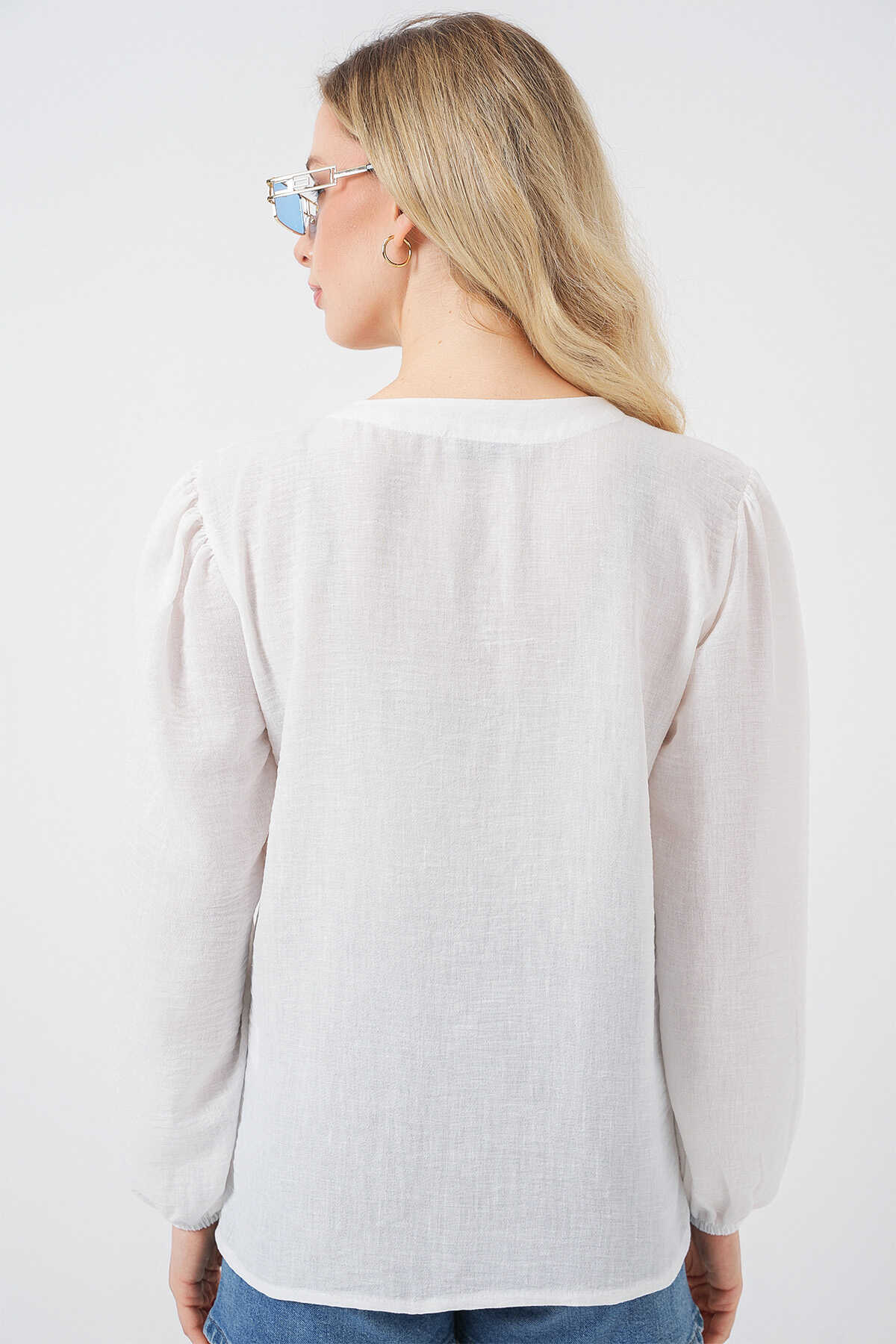 Kadın Nakışlı Uzun Kol Bluz 963 - Krem - Kombin