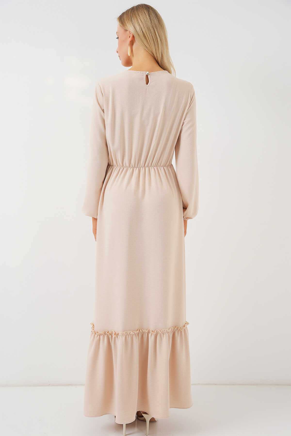Kadın Nakışlı Uzun Tesettür Elbise 2550 - Krem - Kombin