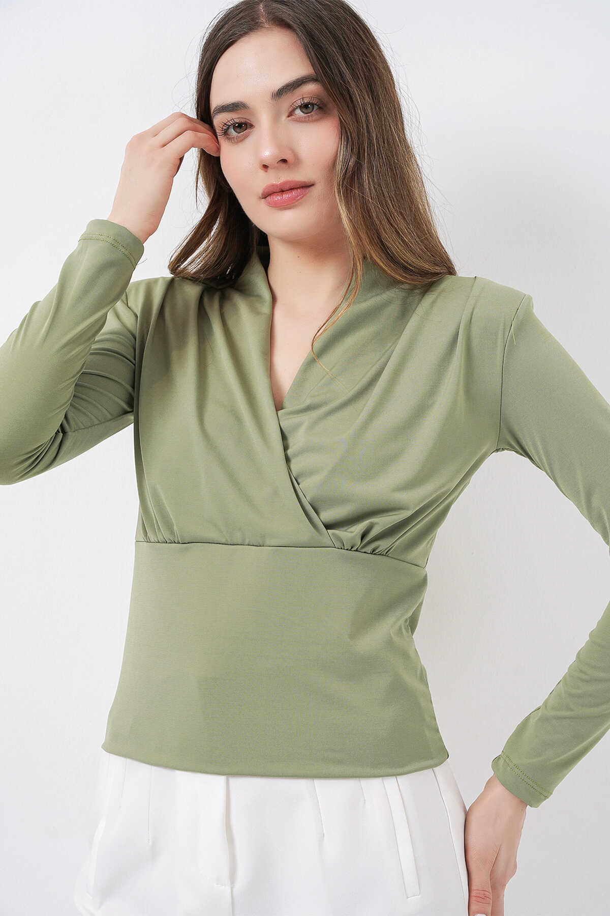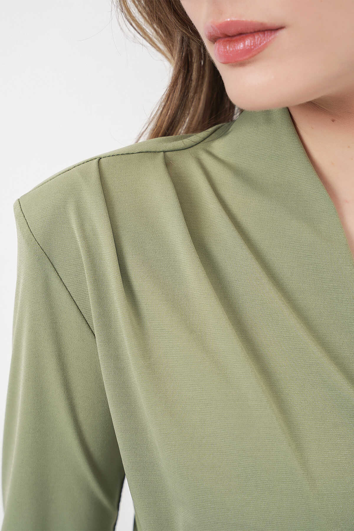 Kadın Omuz Vatkalı Kruvaze Yaka Bluz 942 - E.Yeşil