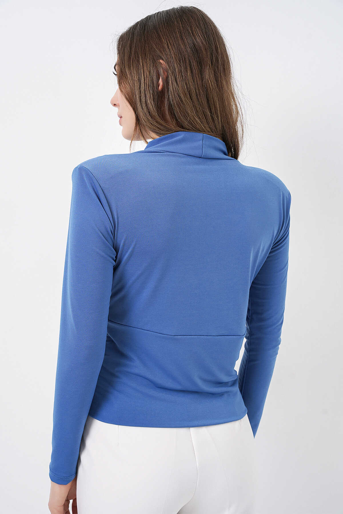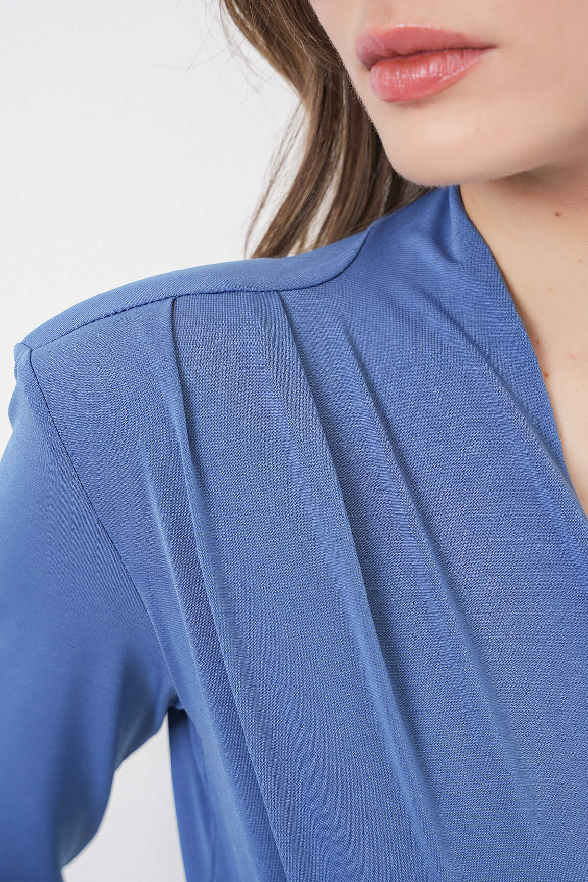 Kadın Omuz Vatkalı Kruvaze Yaka Bluz 942 - İndigo - Kombin