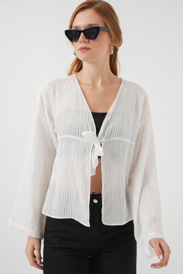 Kadın Önü Bağcıklı Bluz 952 - Beyaz
