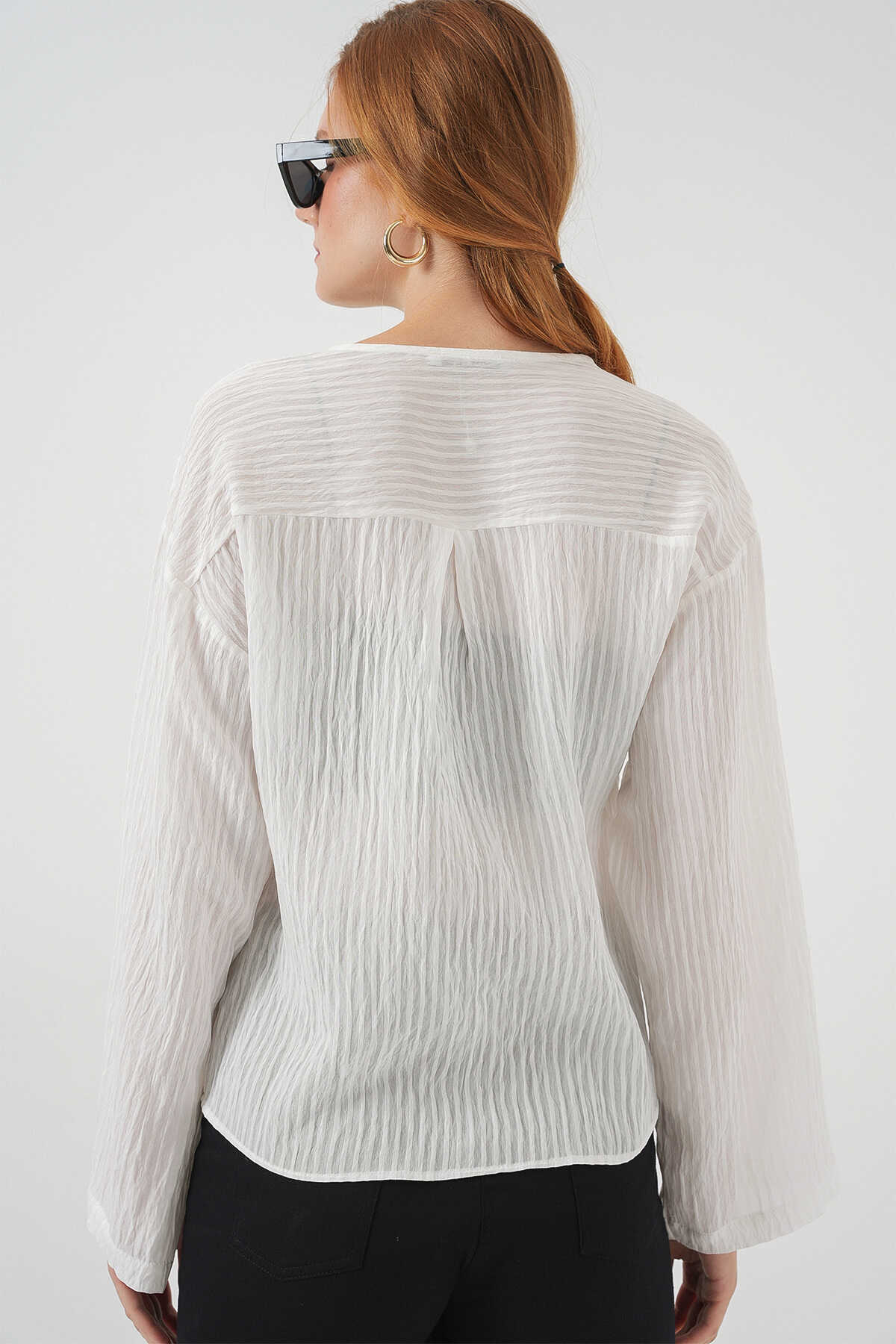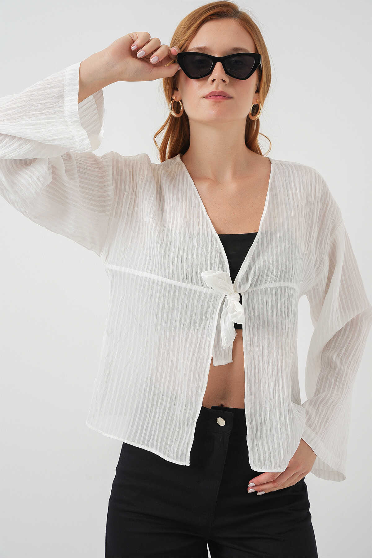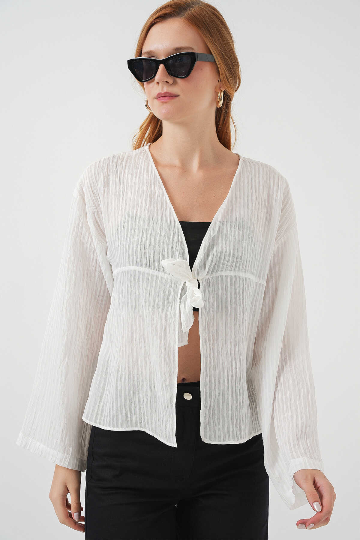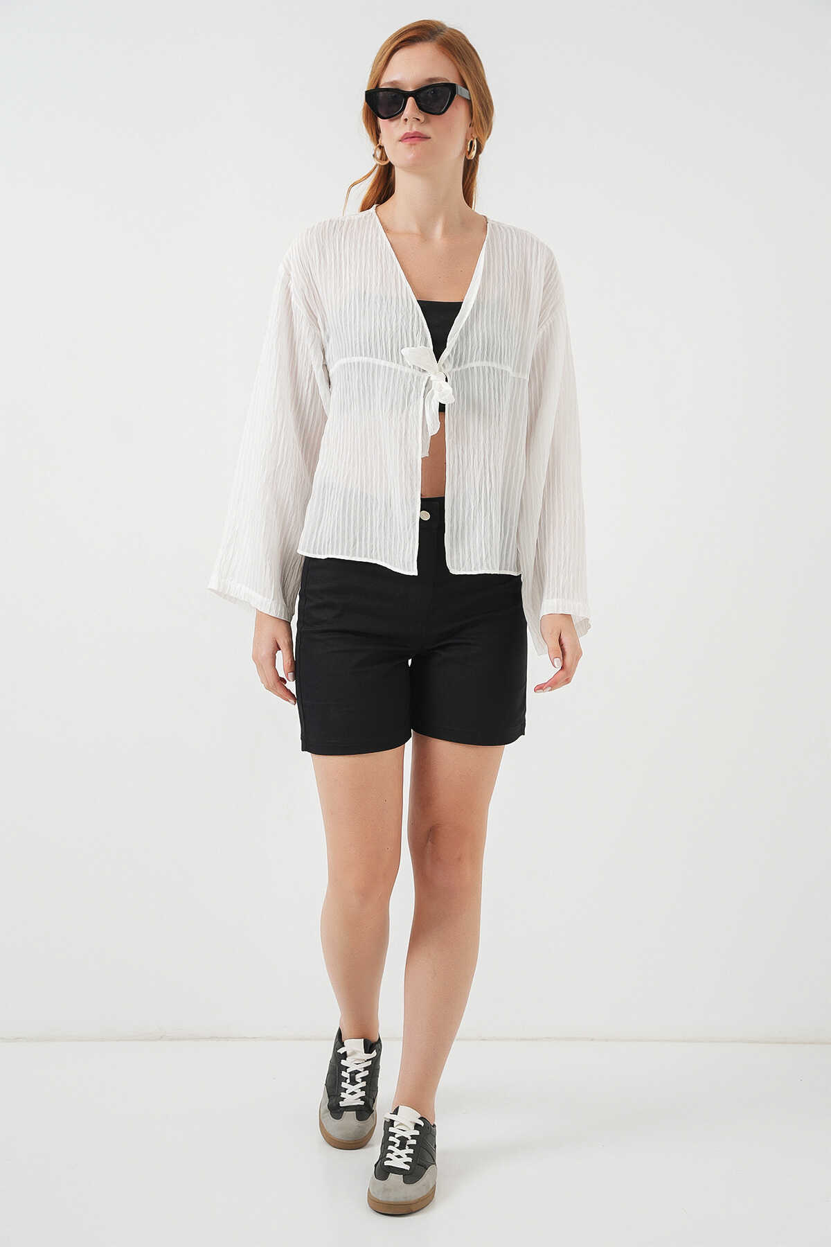Kadın Önü Bağcıklı Bluz 952 - Beyaz - Kombin