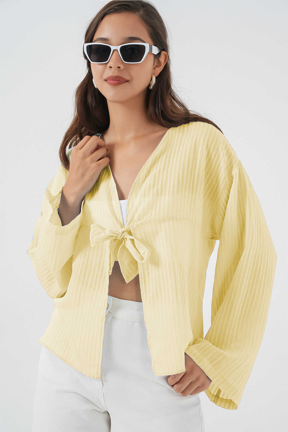 Kadın Önü Bağcıklı Bluz 952 - Sarı - Kombin