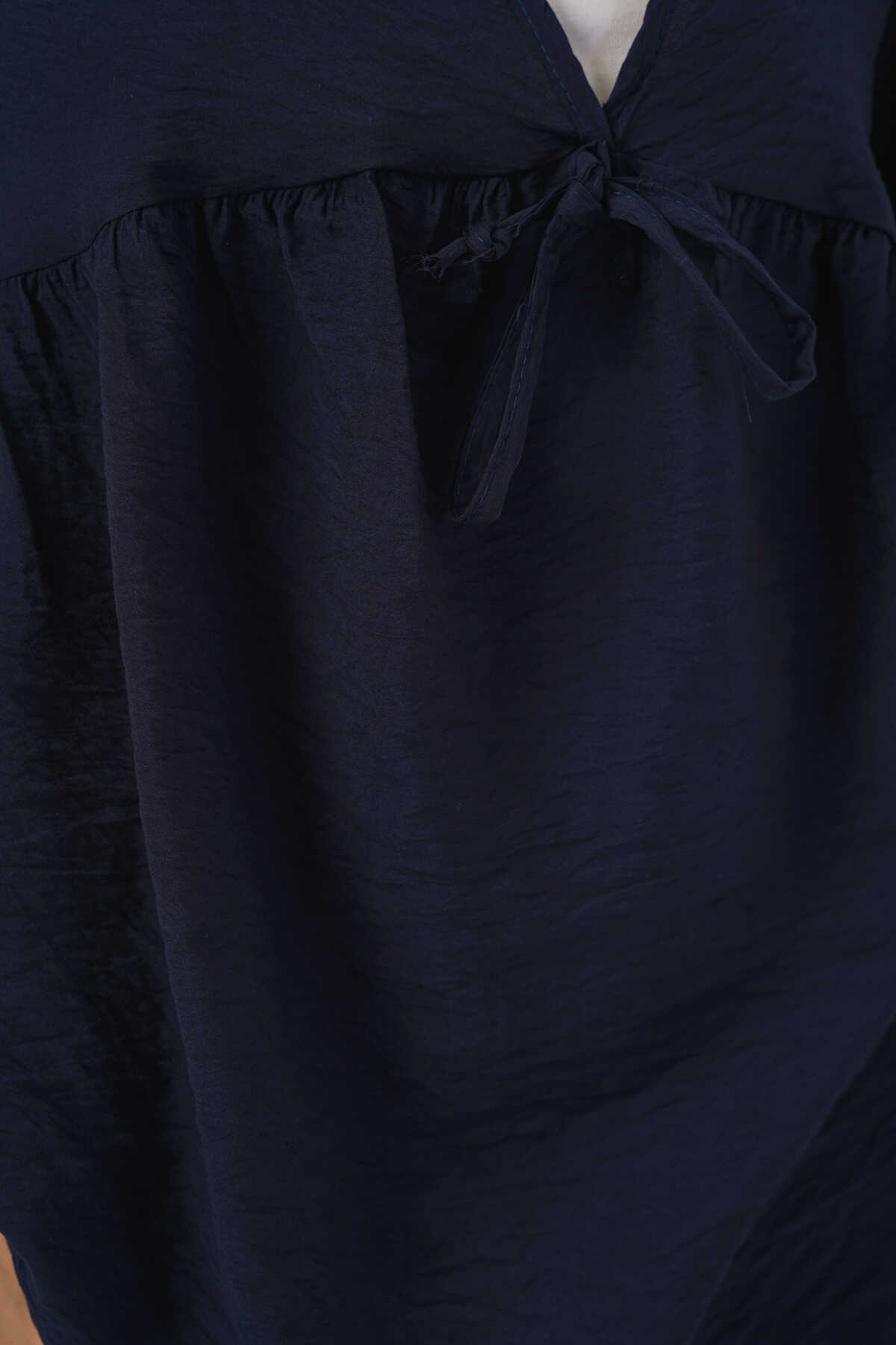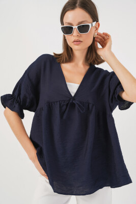 Kadın Önü Bağcıklı Kısa Kol Bluz 962 - Lacivert