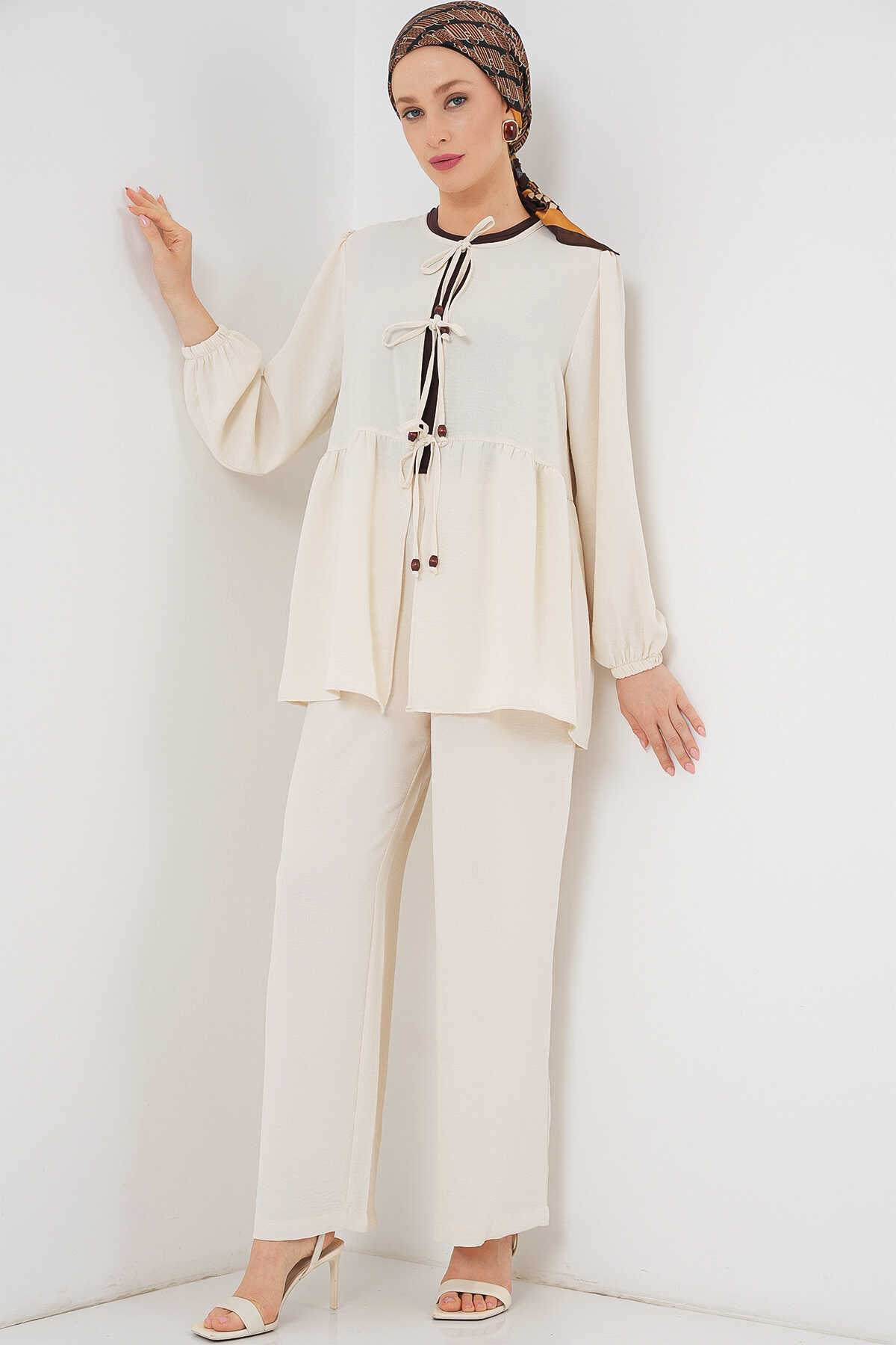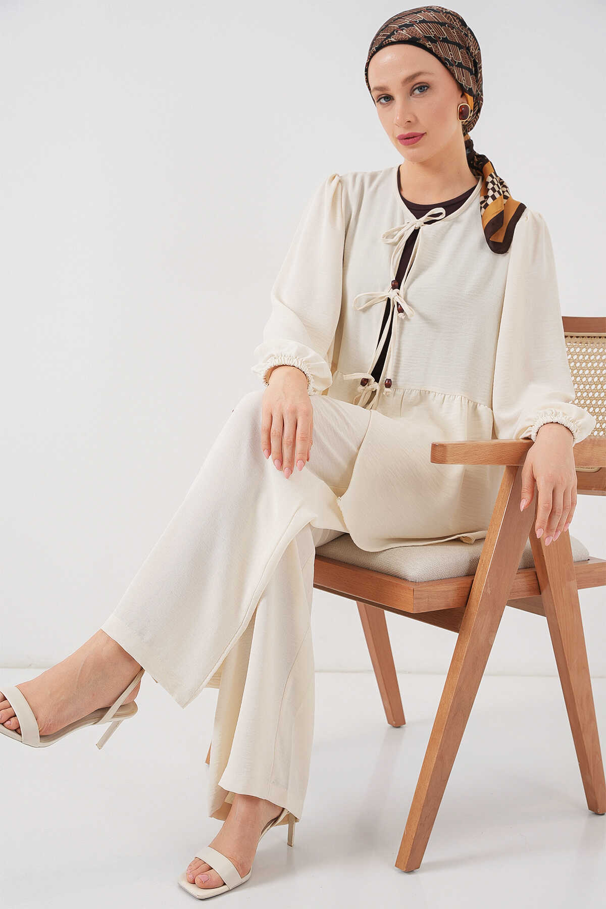 Kadin Önü Bagcikli Tunik Pantolon Ikili Takim
