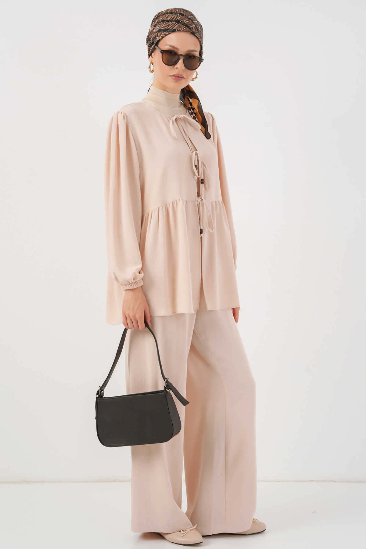 Kadin Önü Bagcikli Tunik Pantolon Ikili Takim