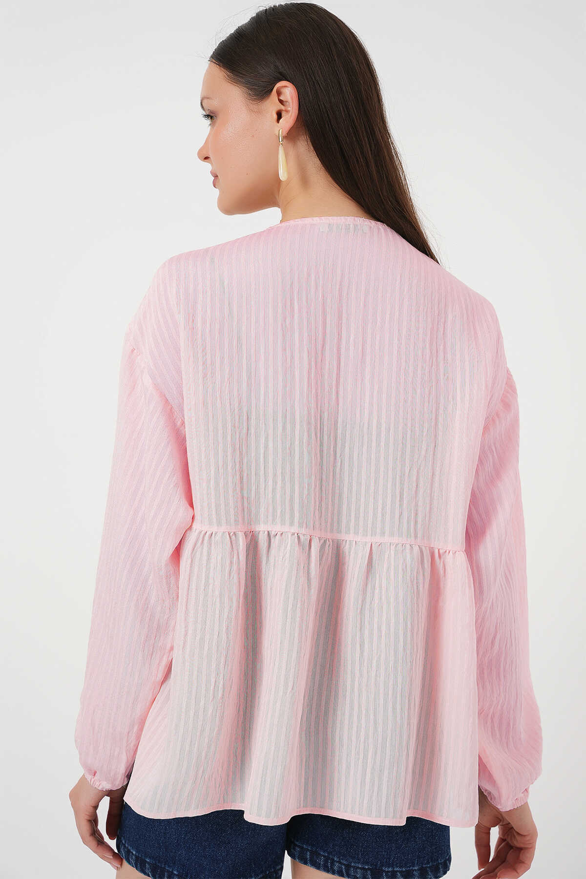 Kadın Önü Bağcıklı Uzun Kol Bluz 946 - Pembe