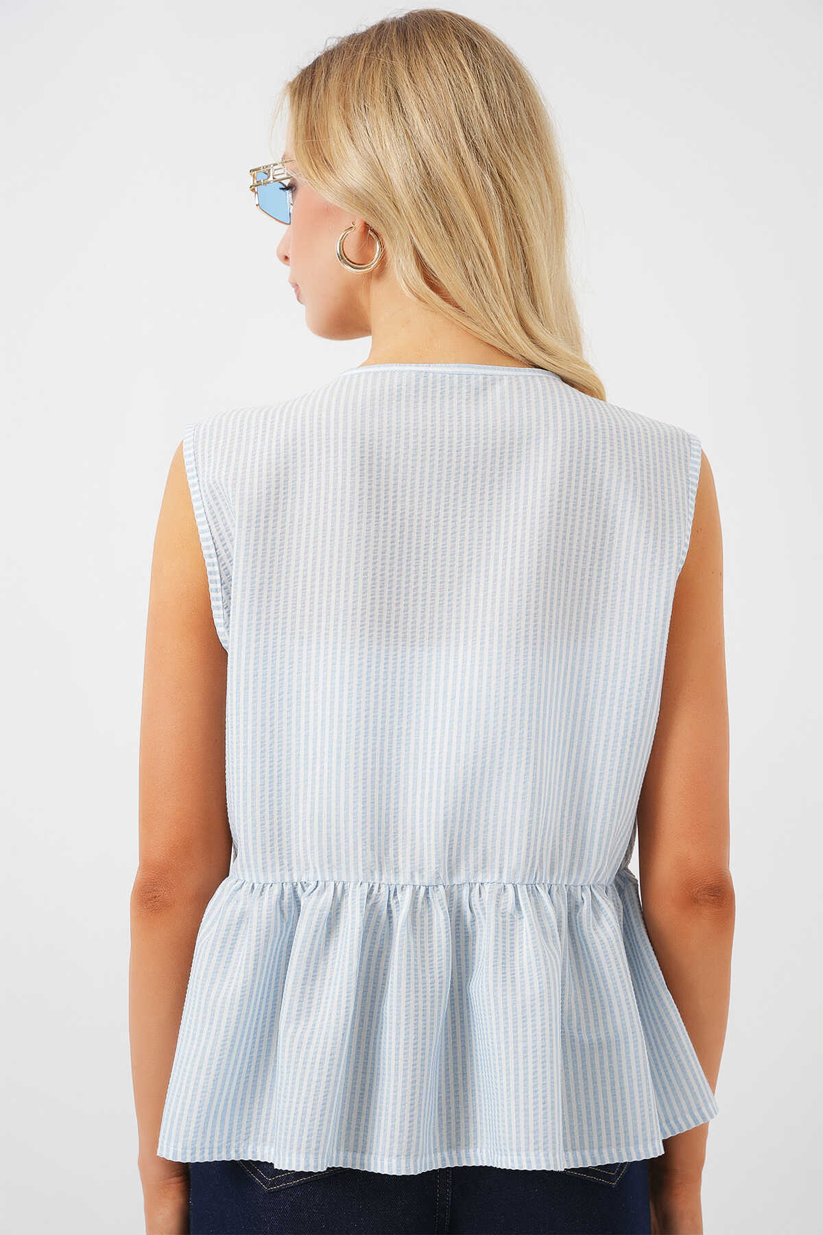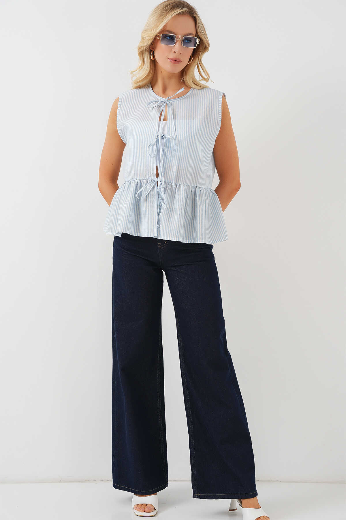 Kadın Önü Bağlamalı Bluz 961 - Mavi - Kombin