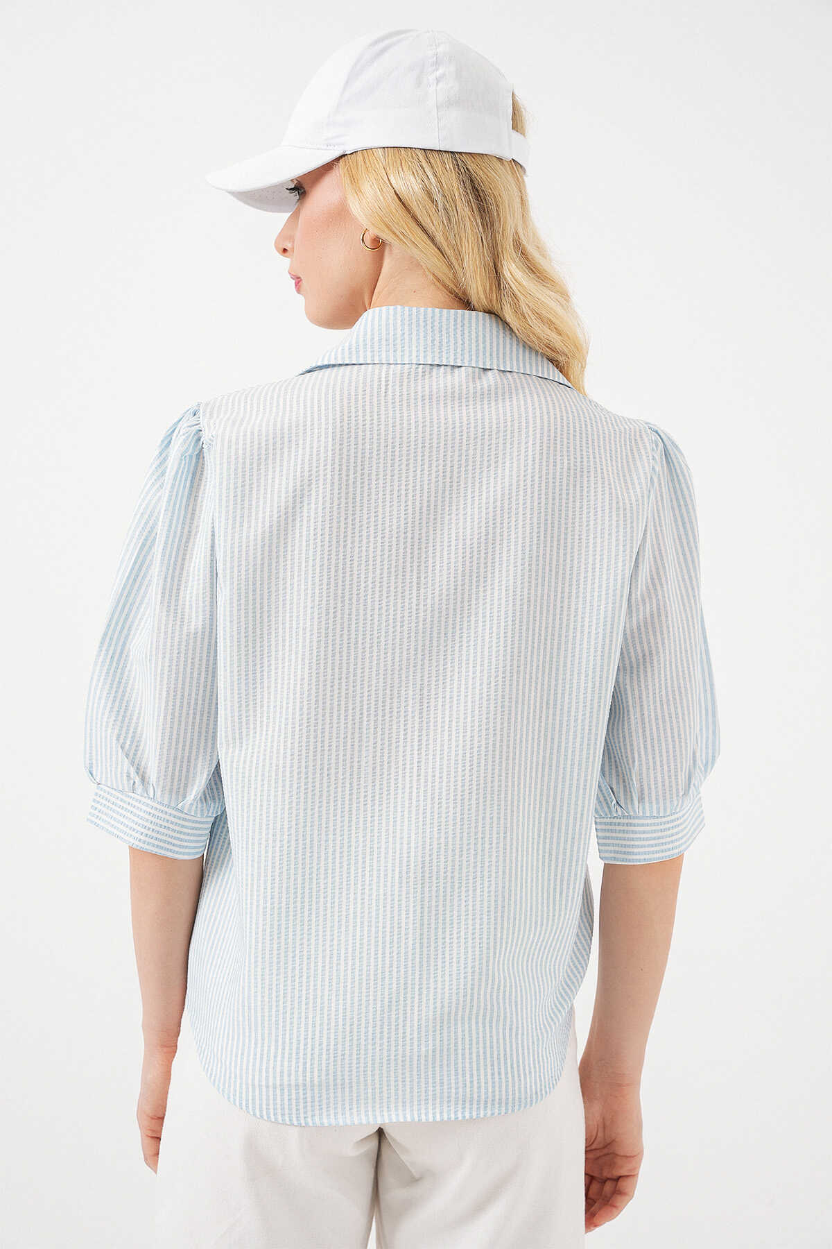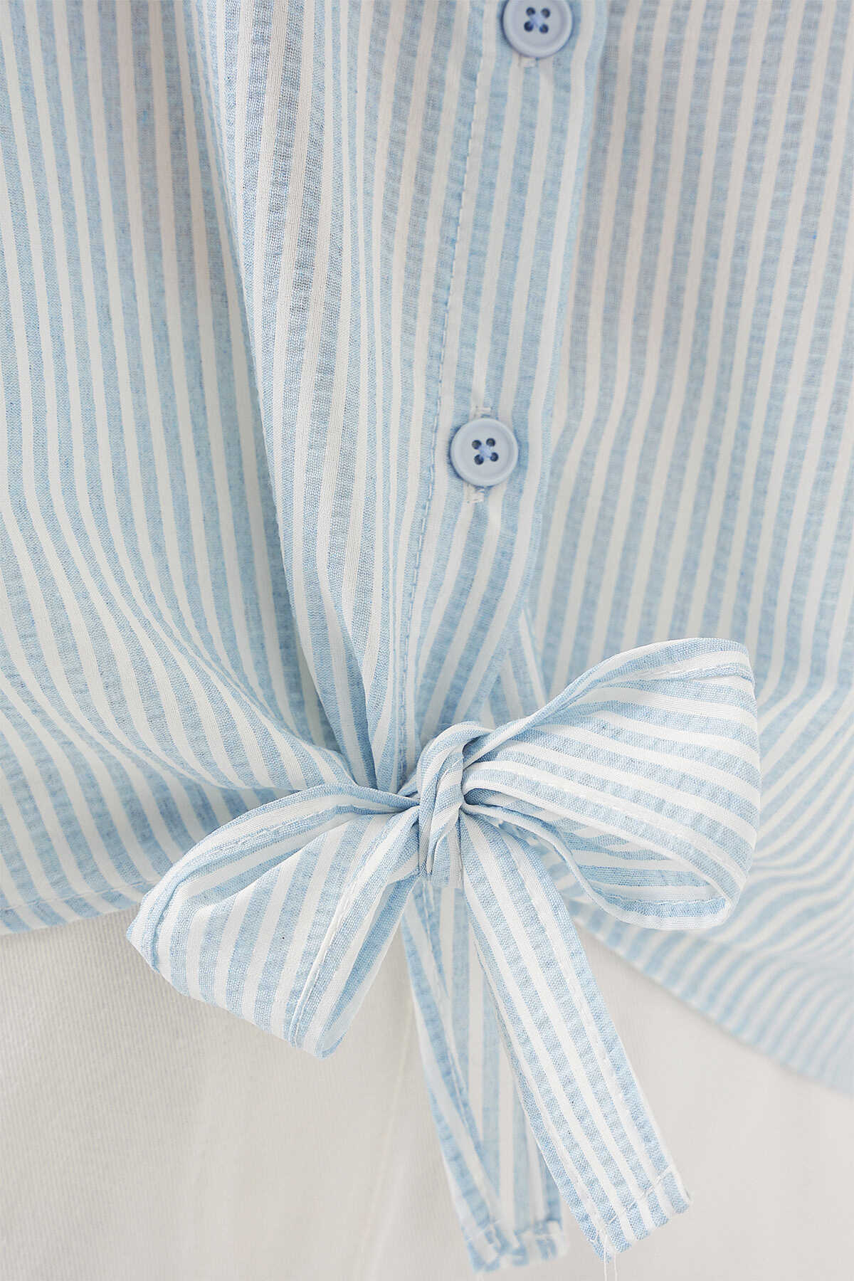 Kadin Önü Baglamali Çizgili Gömlek
