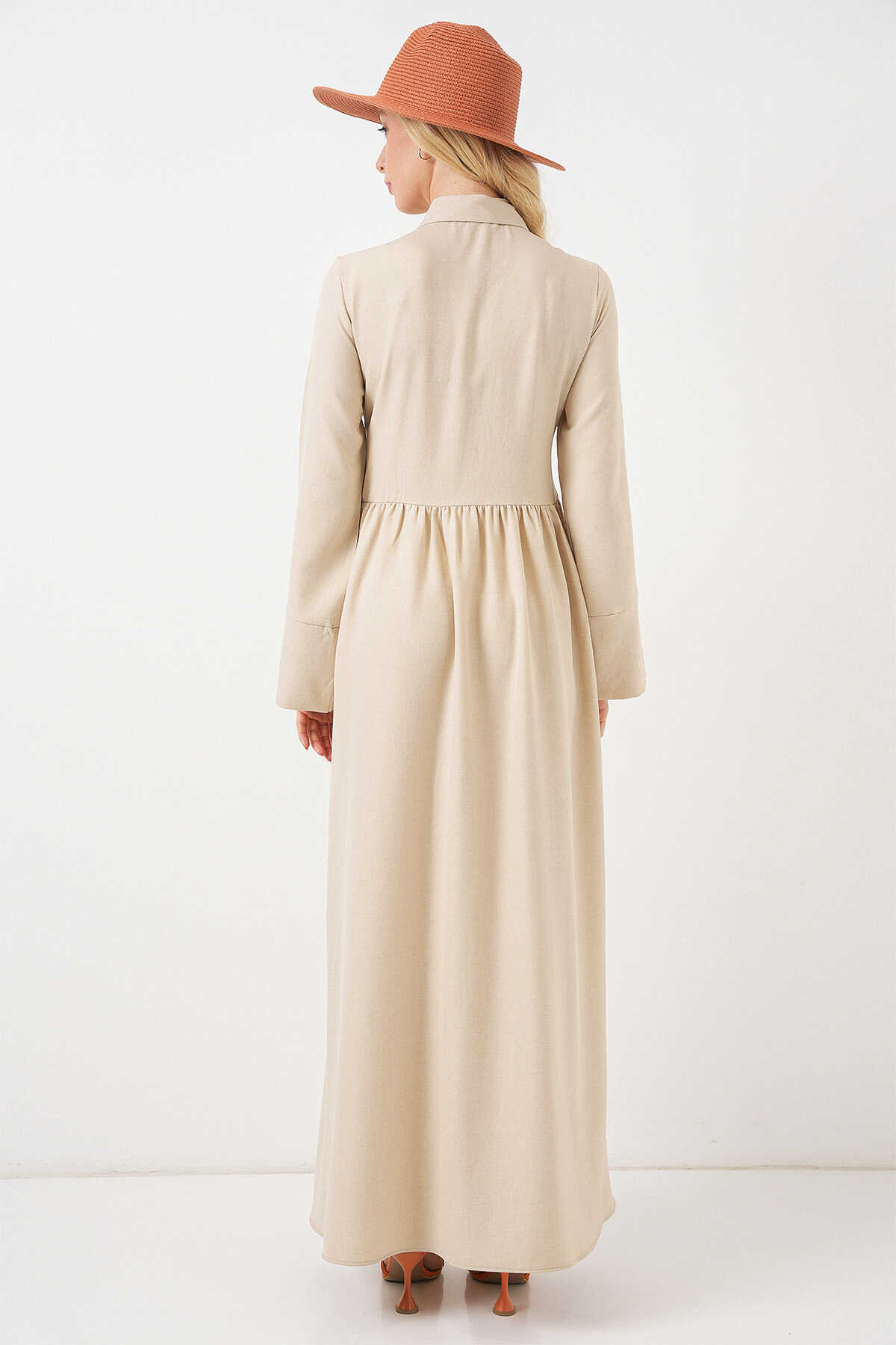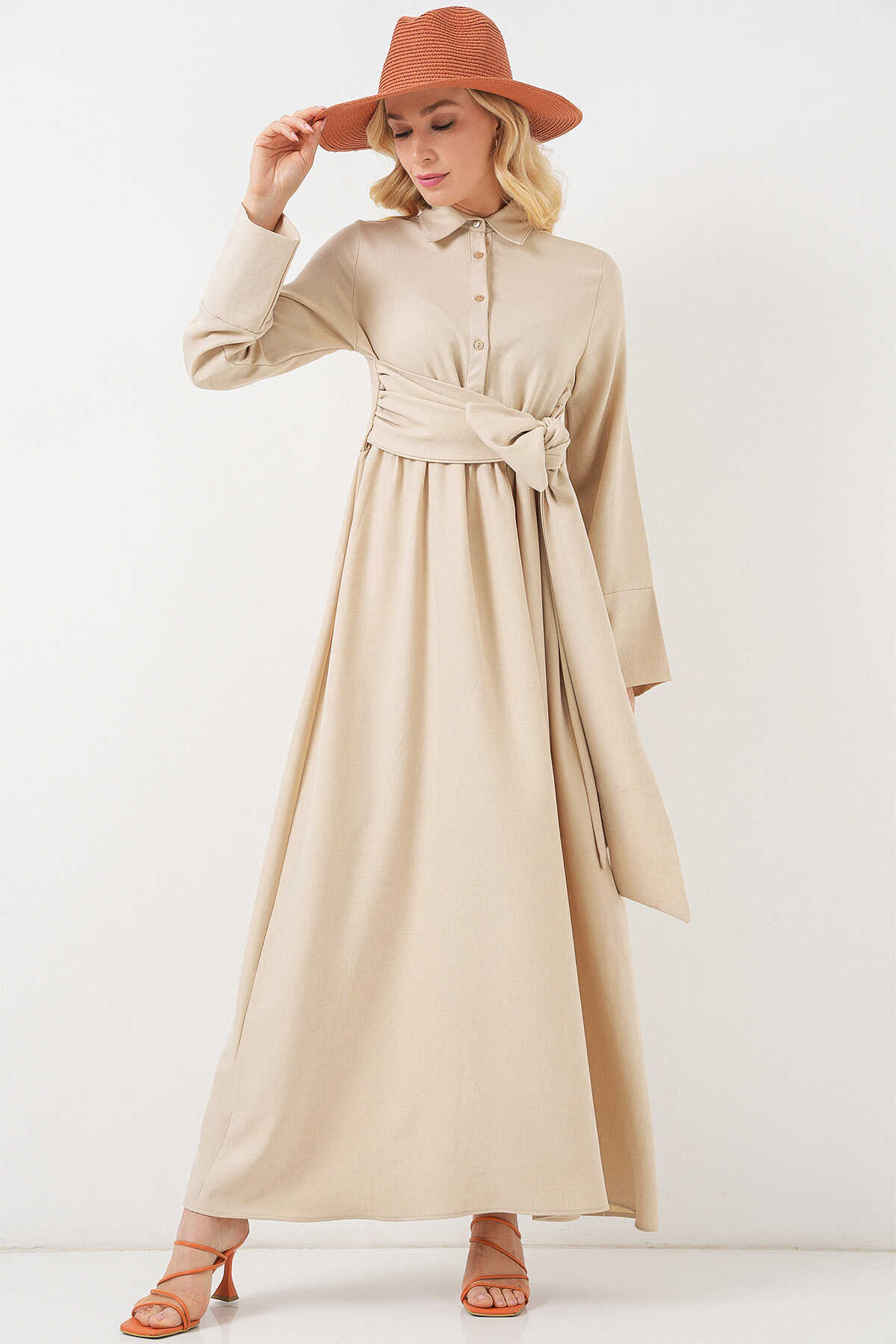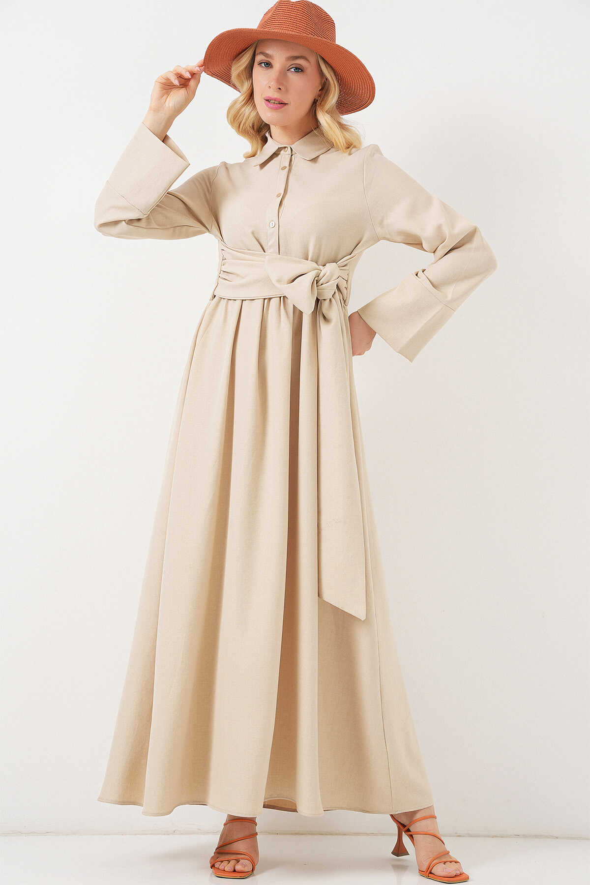 Kadin Önü Baglamali Keten Elbise