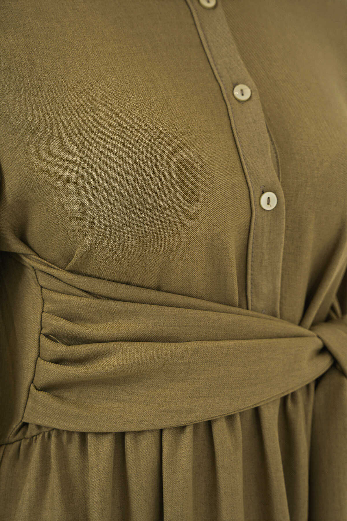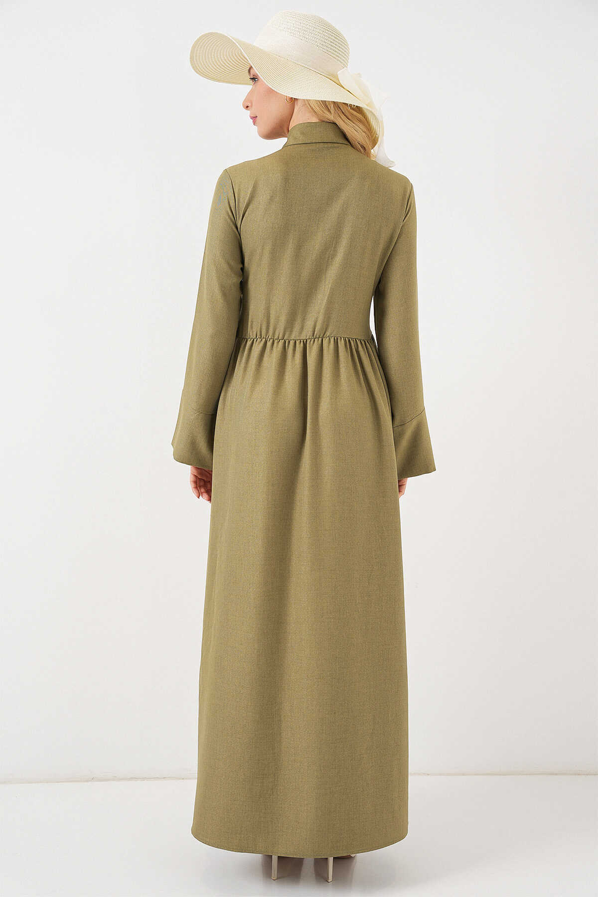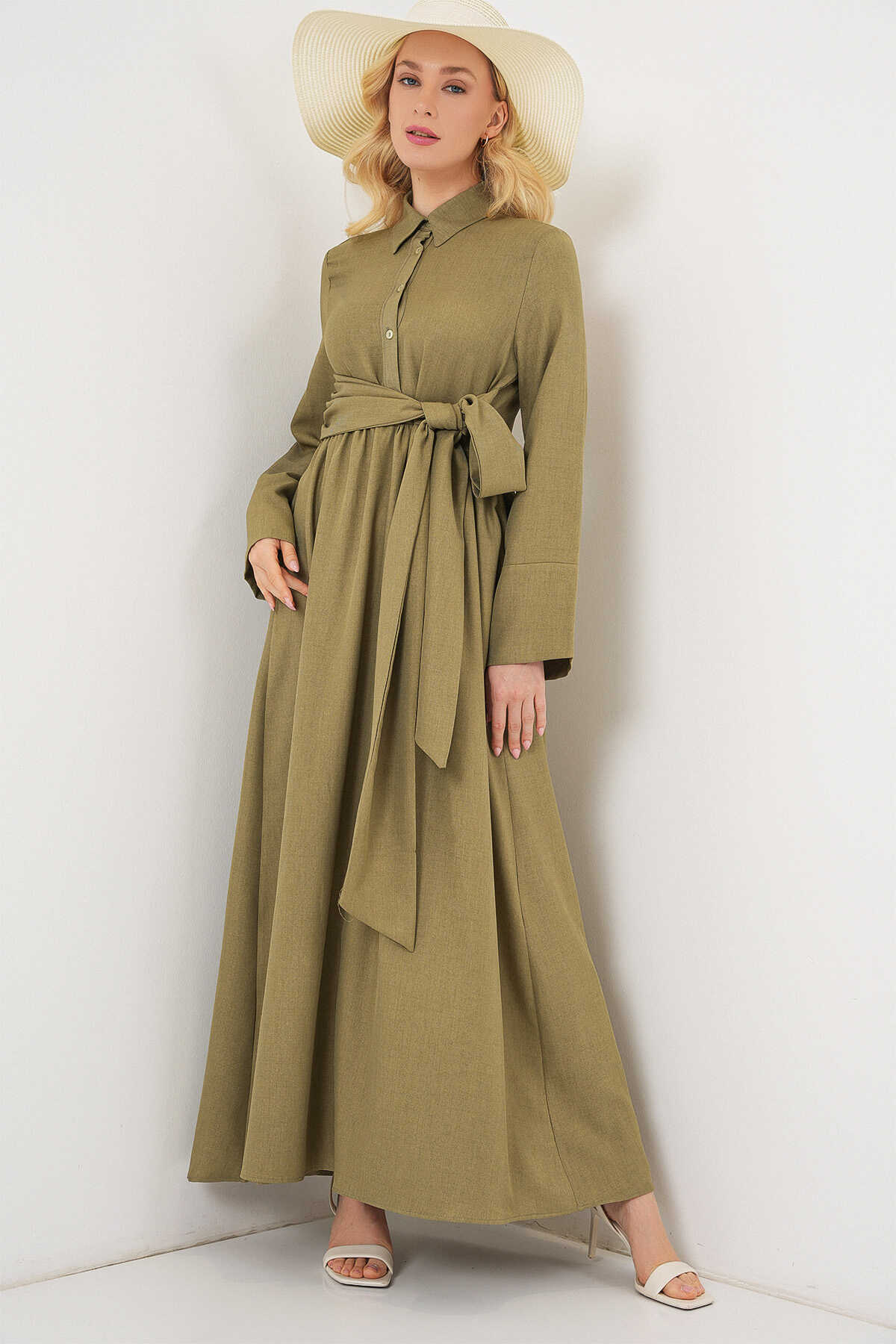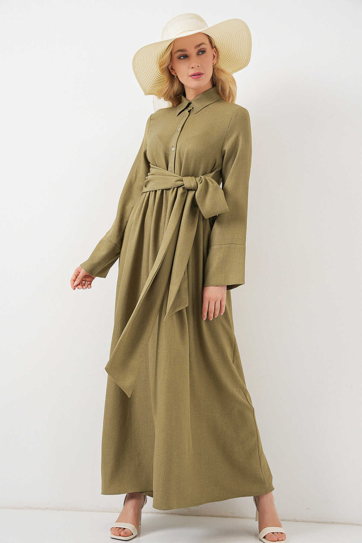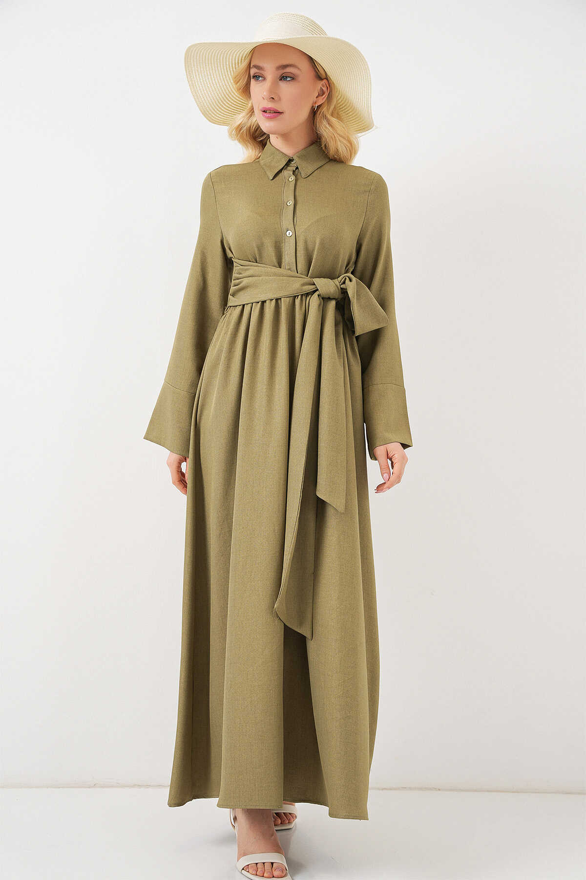Kadin Önü Baglamali Keten Elbise