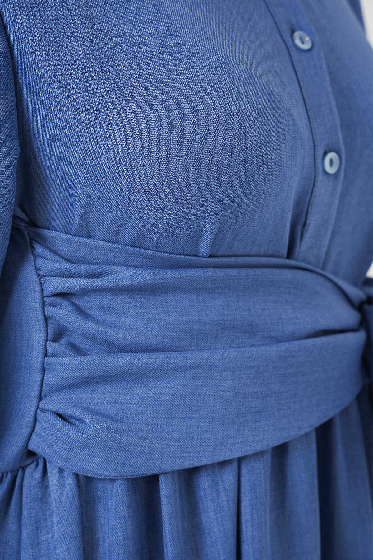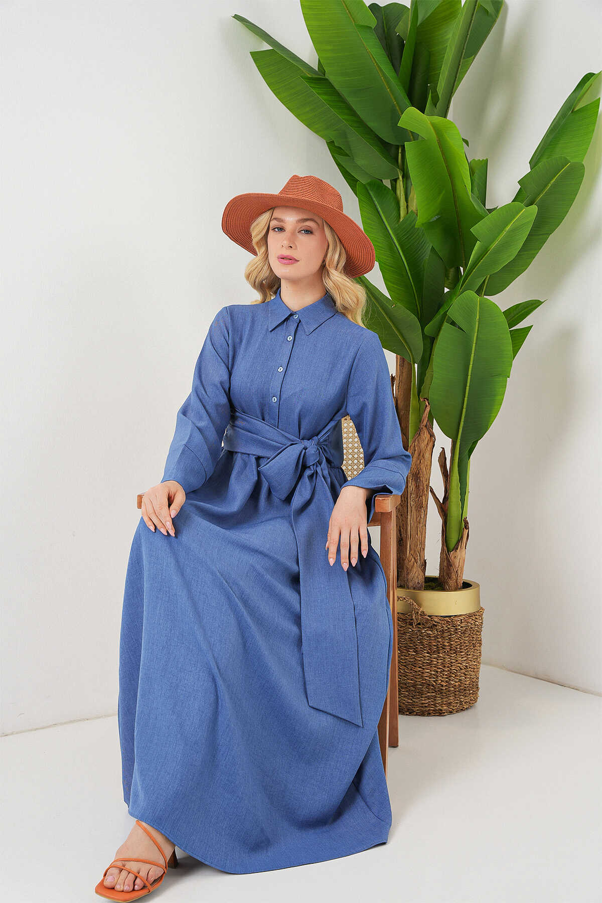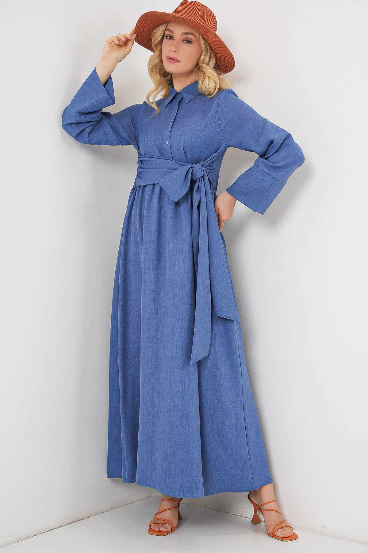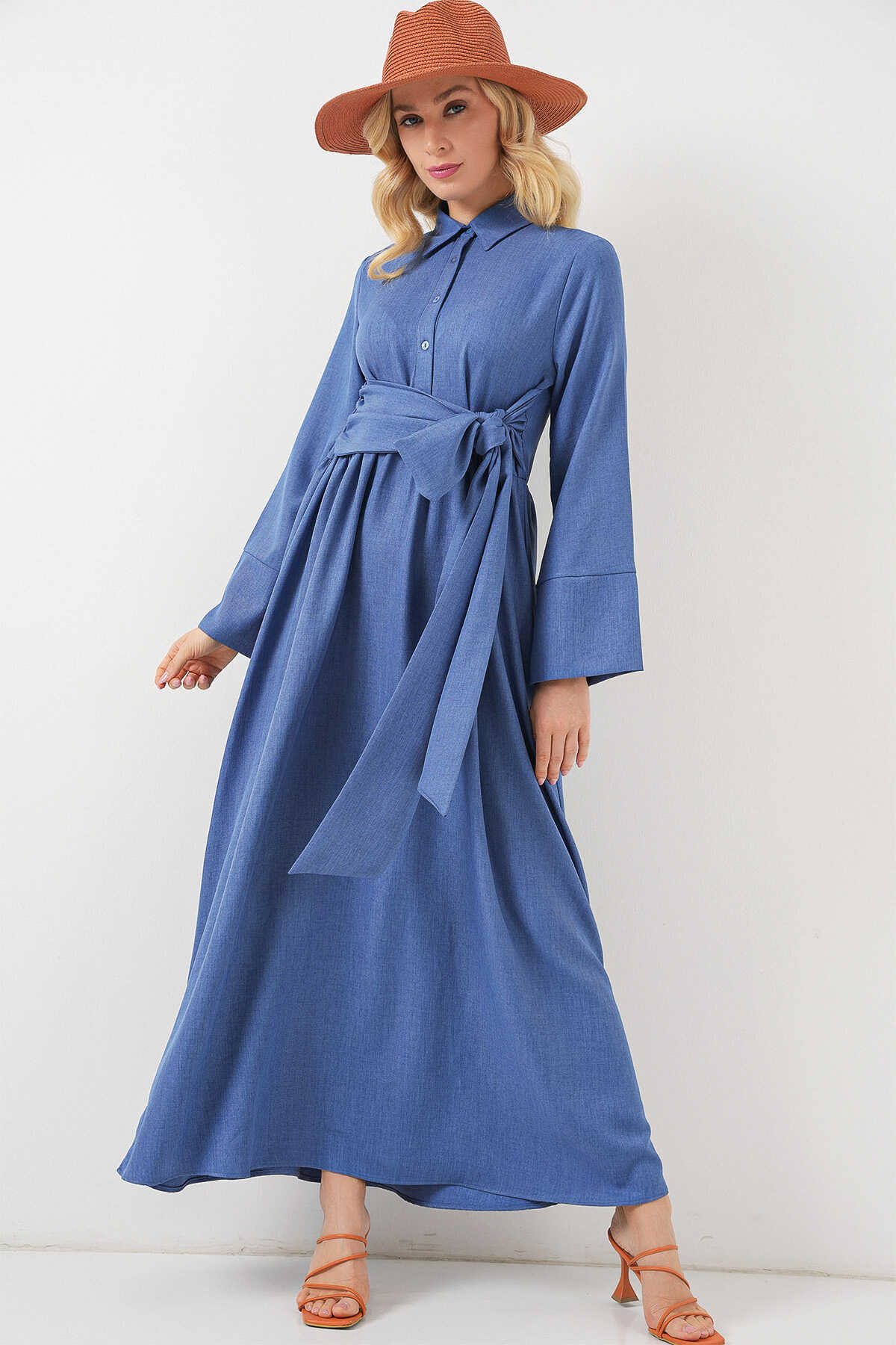 Kadin Önü Baglamali Keten Elbise