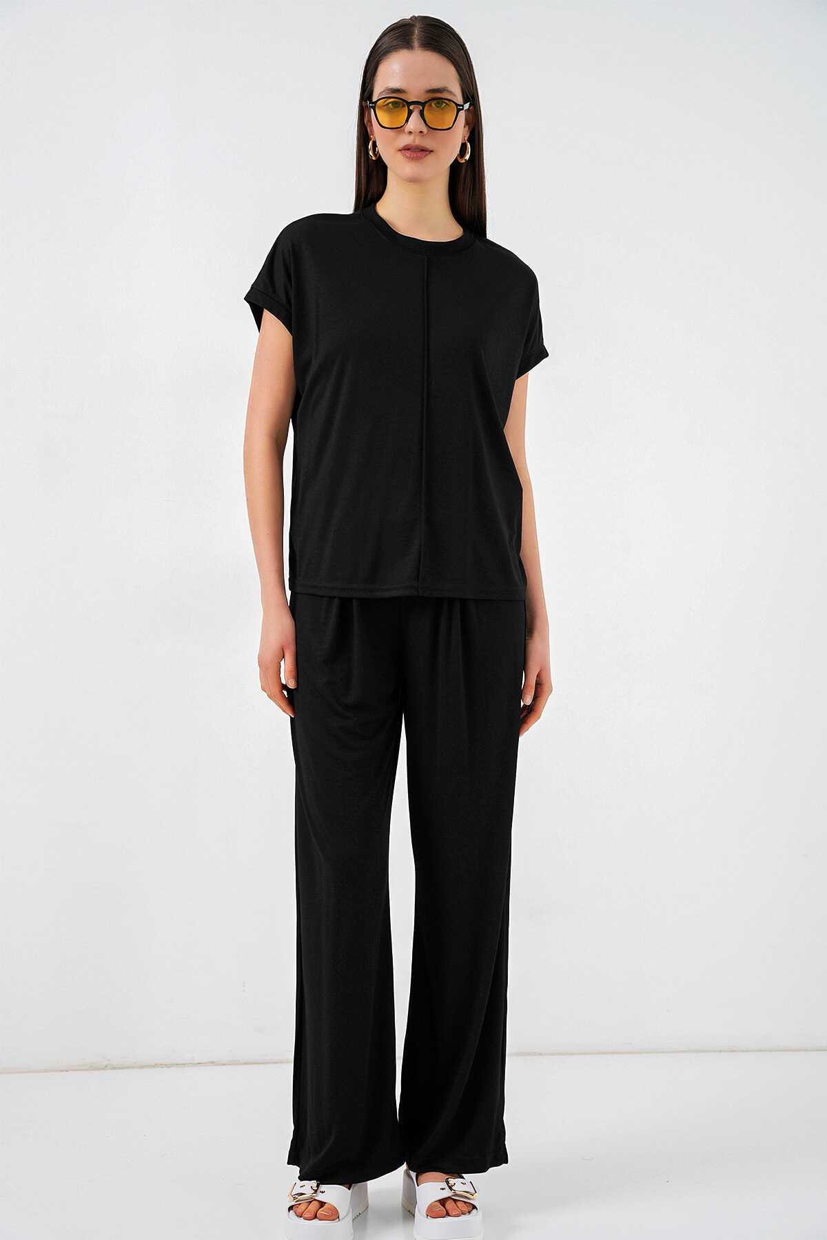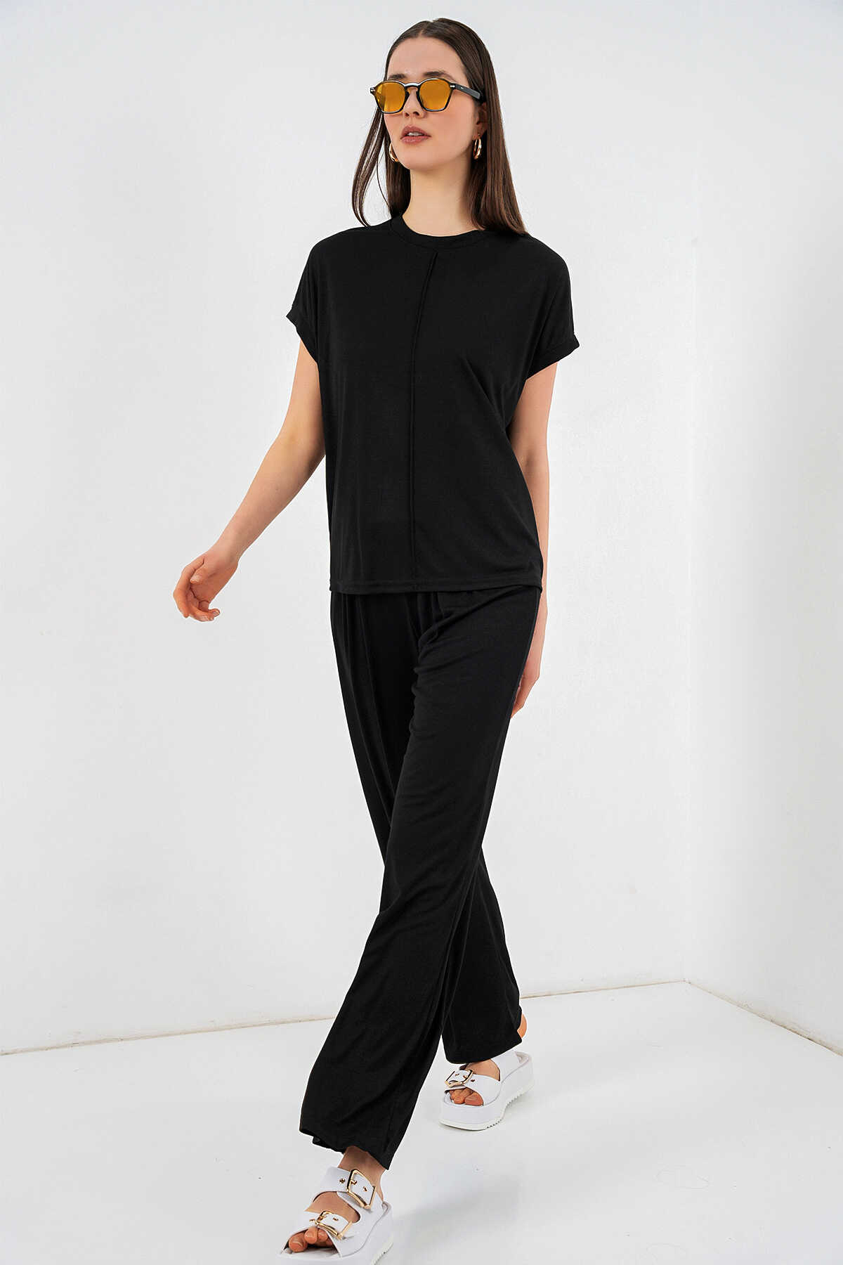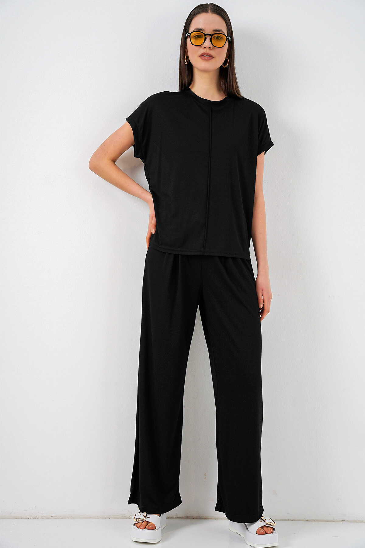 Kadın Örme Bluz Pantolon İkili Takım 30085 - Siyah - Kombin