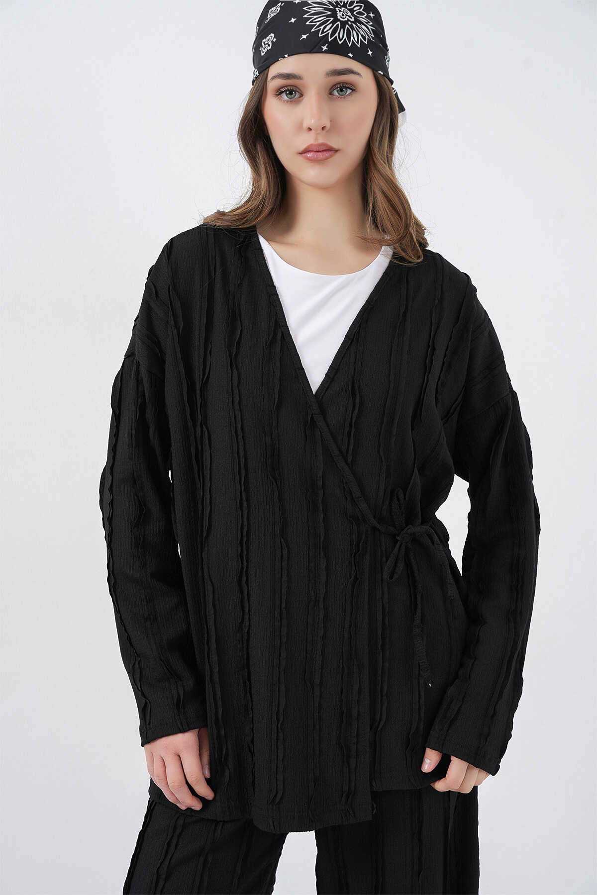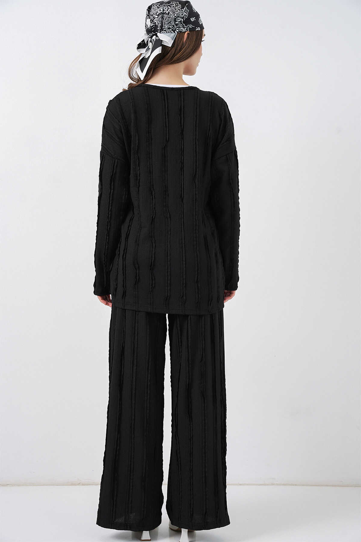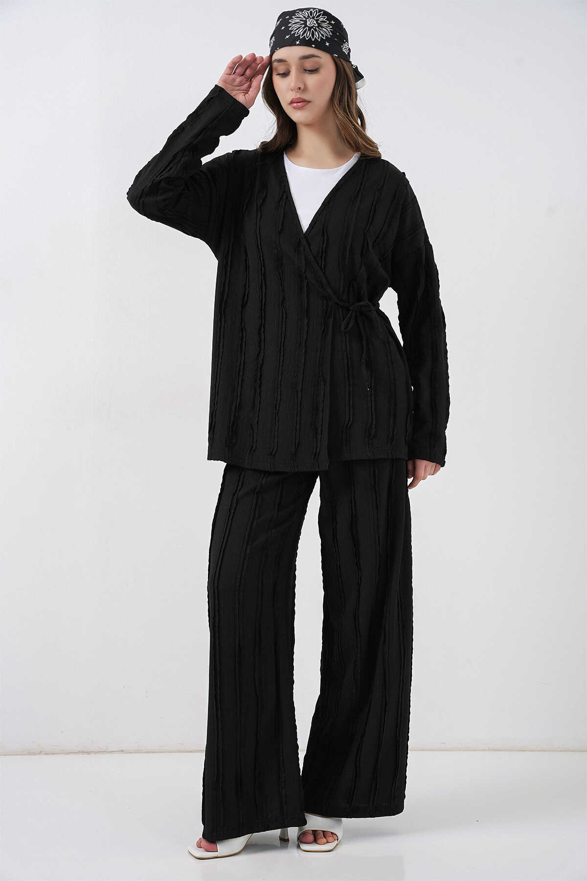 Kadın Örme Kimono Pantolon İkili Takım 30067 - Siyah - Kombin