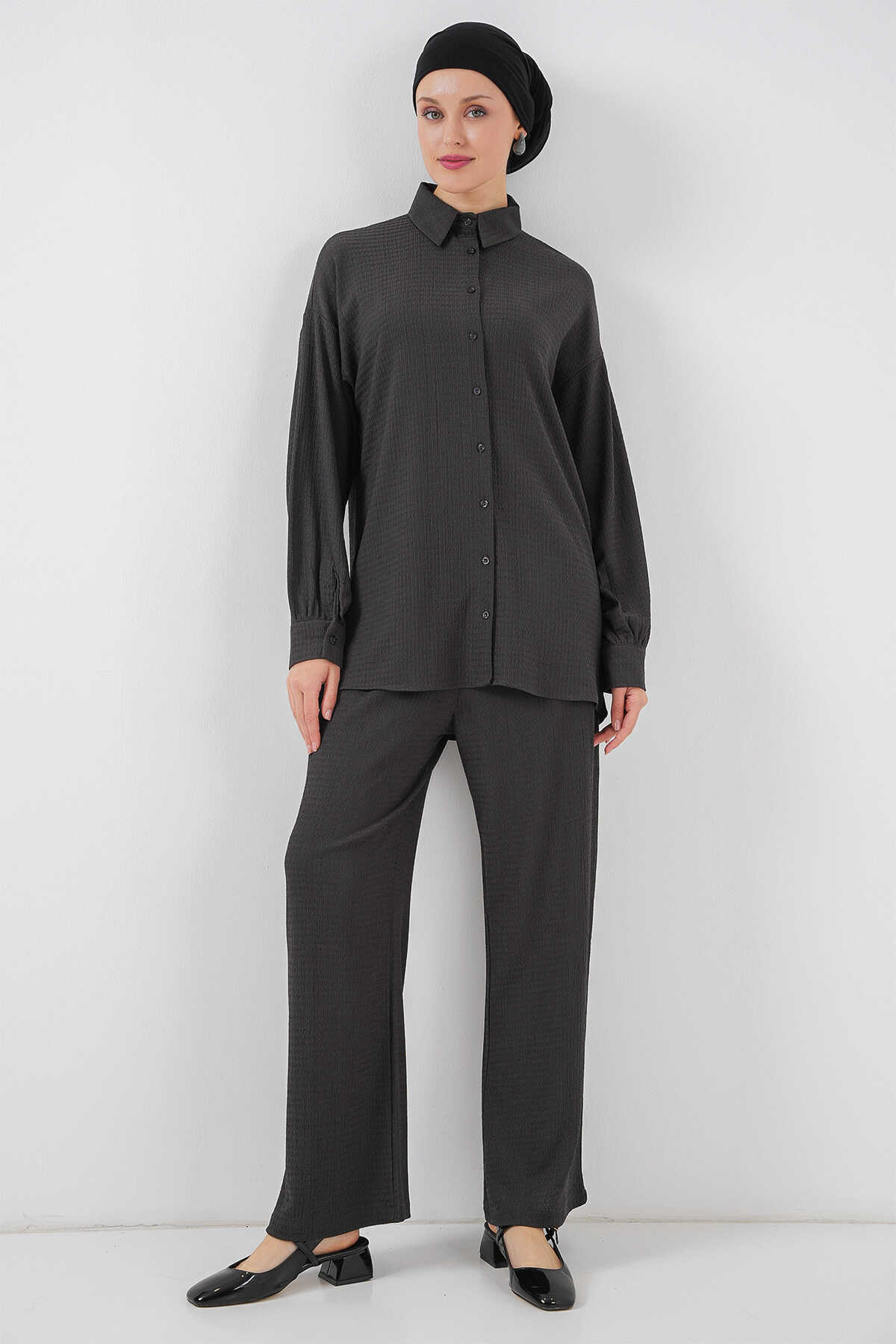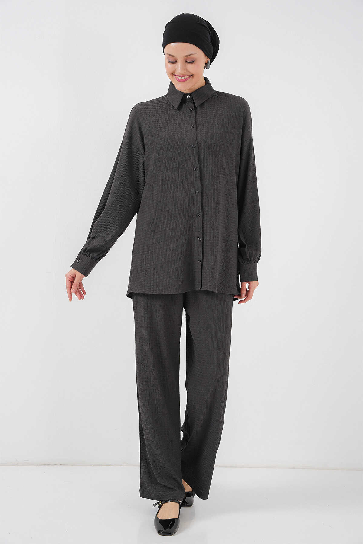 Kadın Örme Tesettür Alt Üst Takım 6711 - Antrasit - Kombin