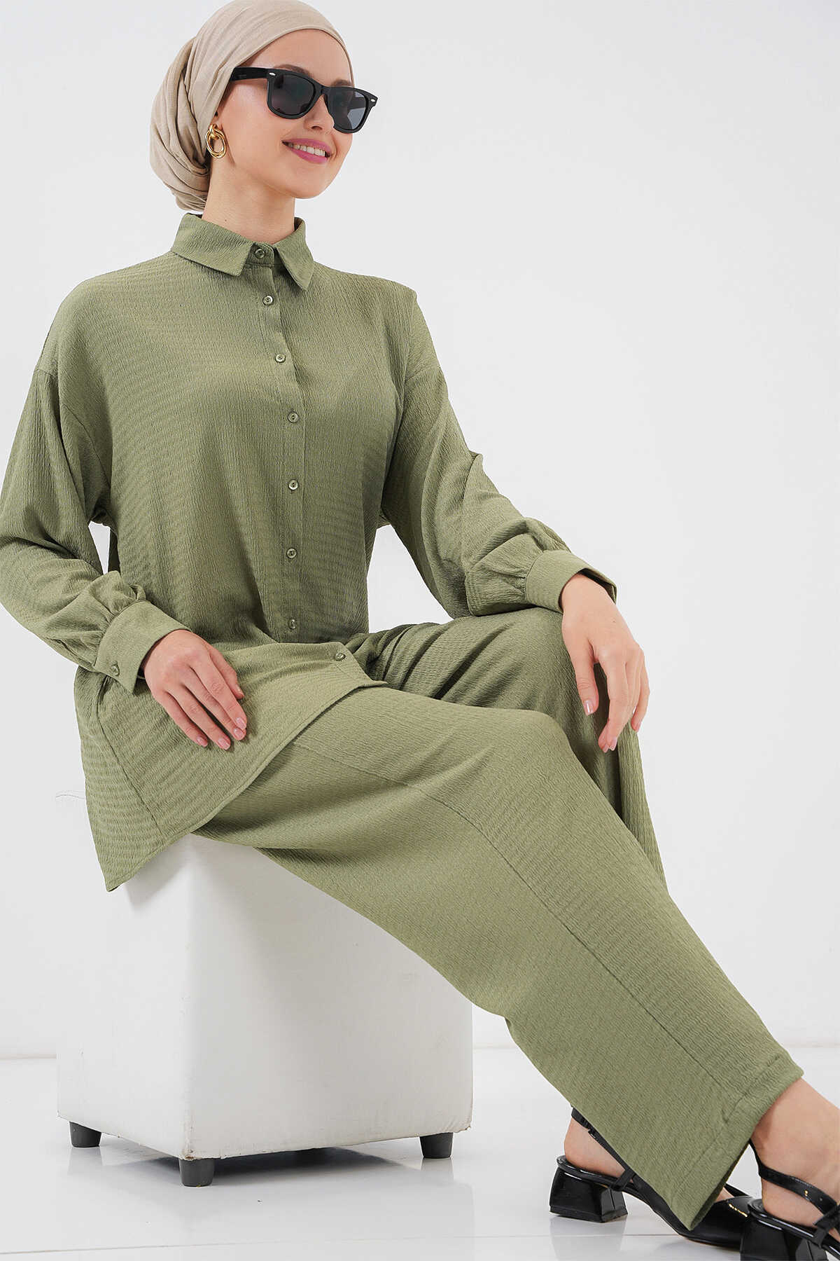 Kadın Örme Tesettür Alt Üst Takım 6711 - Çağla - Kombin