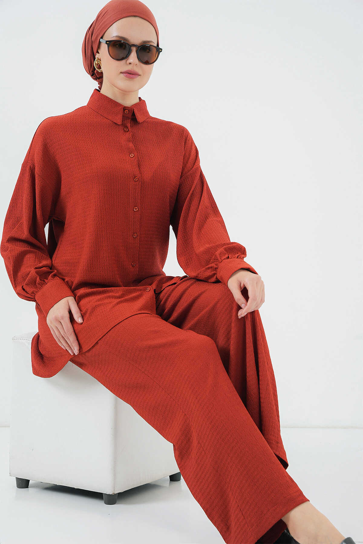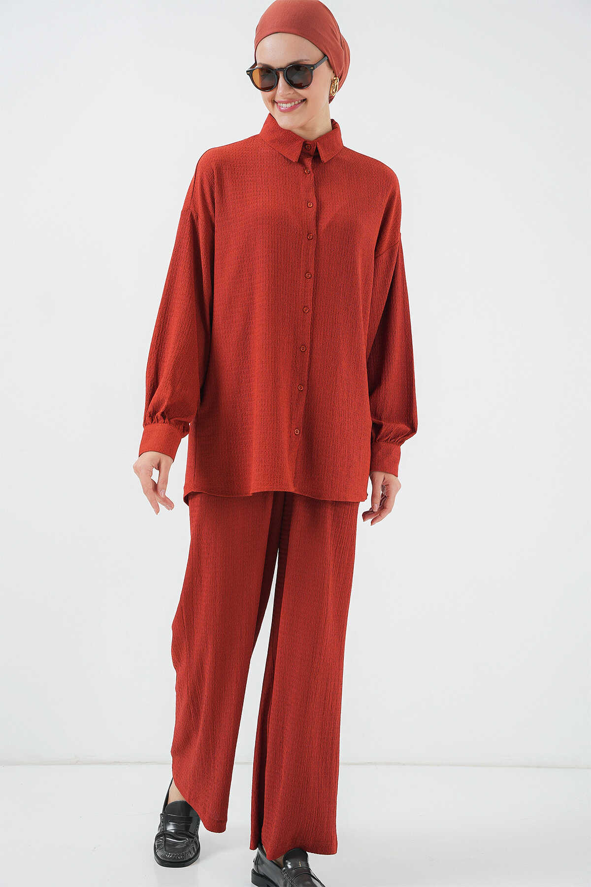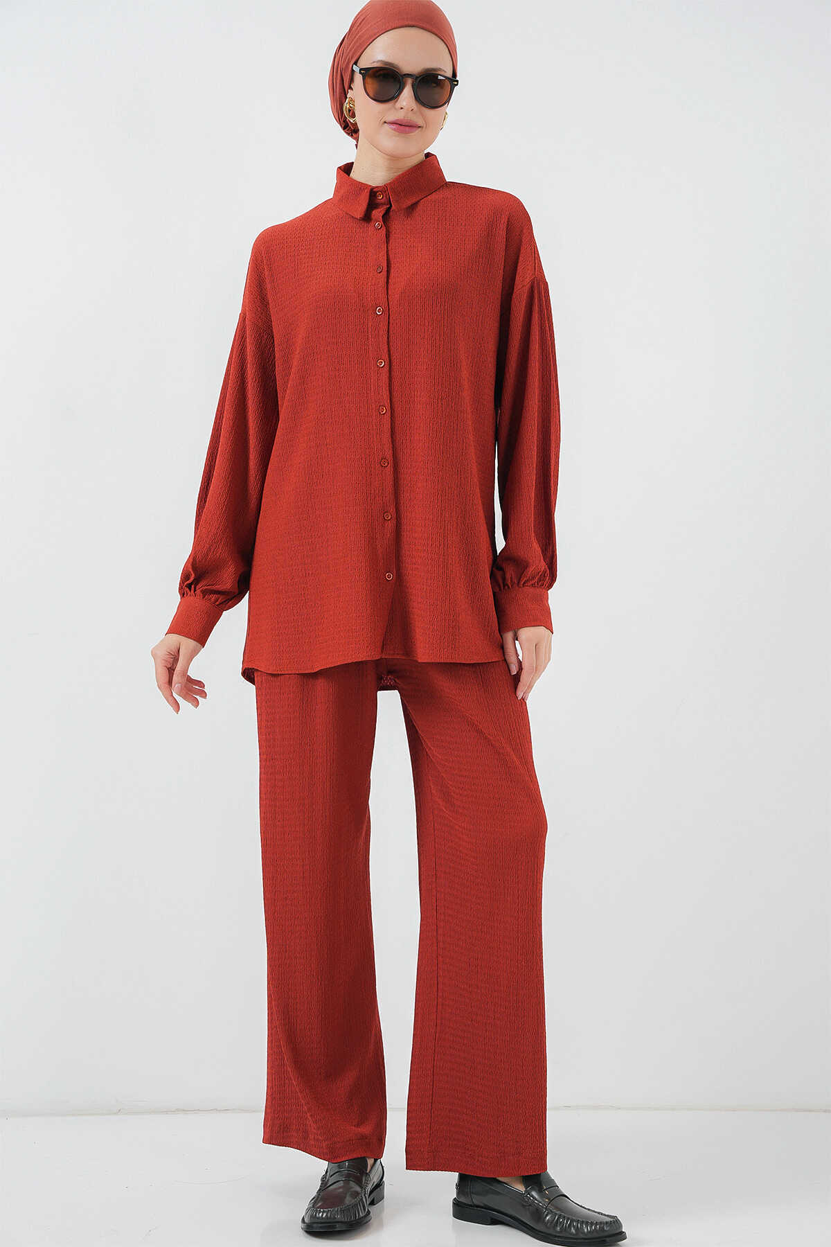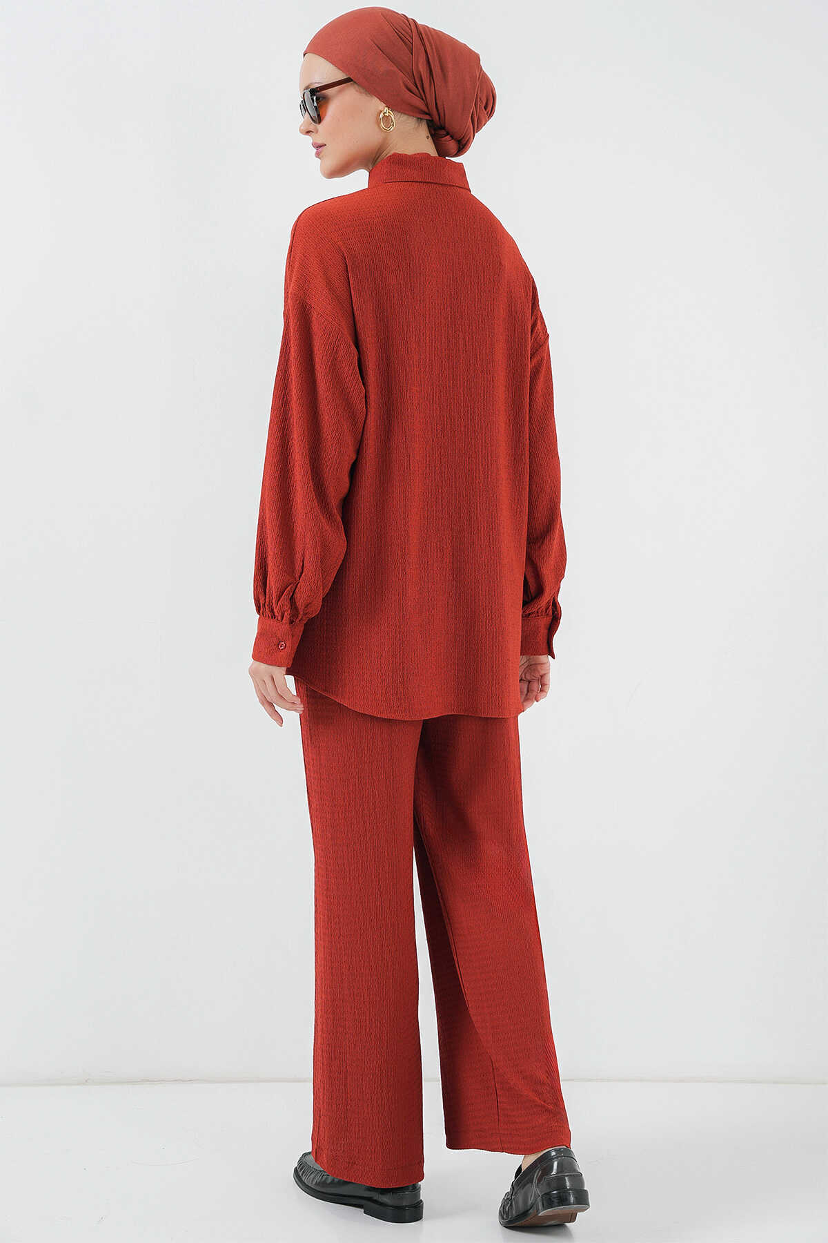 Kadın Örme Tesettür Alt Üst Takım 6711 - Kiremit - Kombin