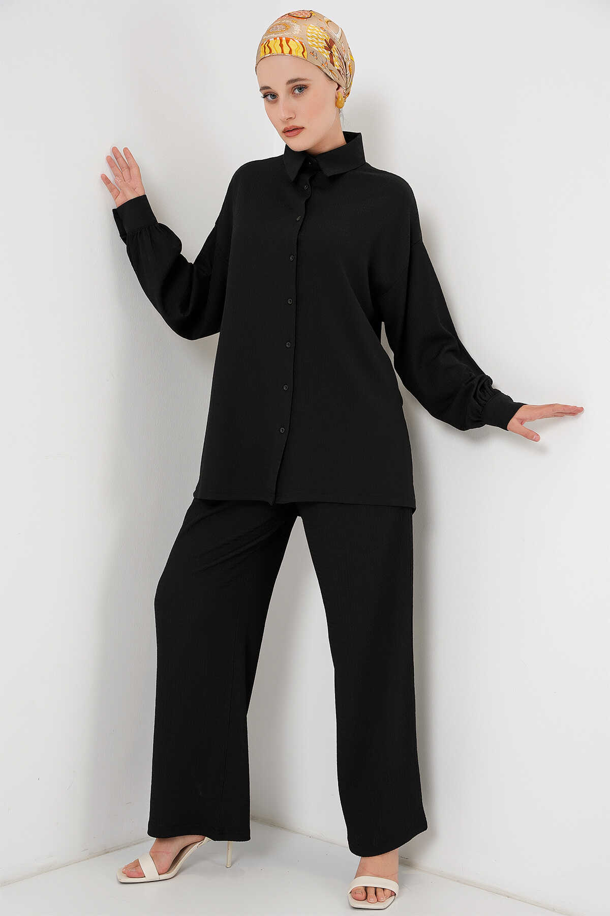 Kadın Örme Tesettür Alt Üst Takım 6711 - Siyah - Kombin