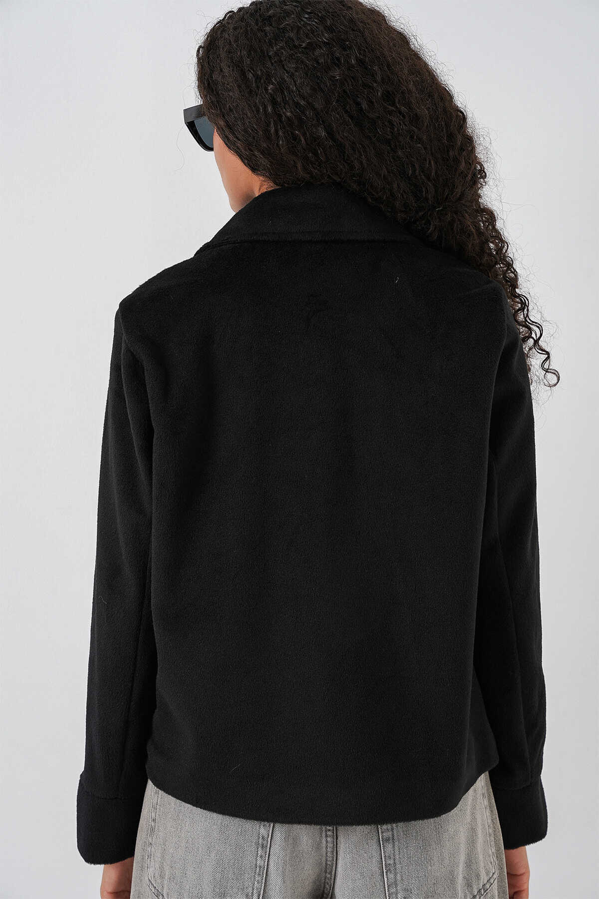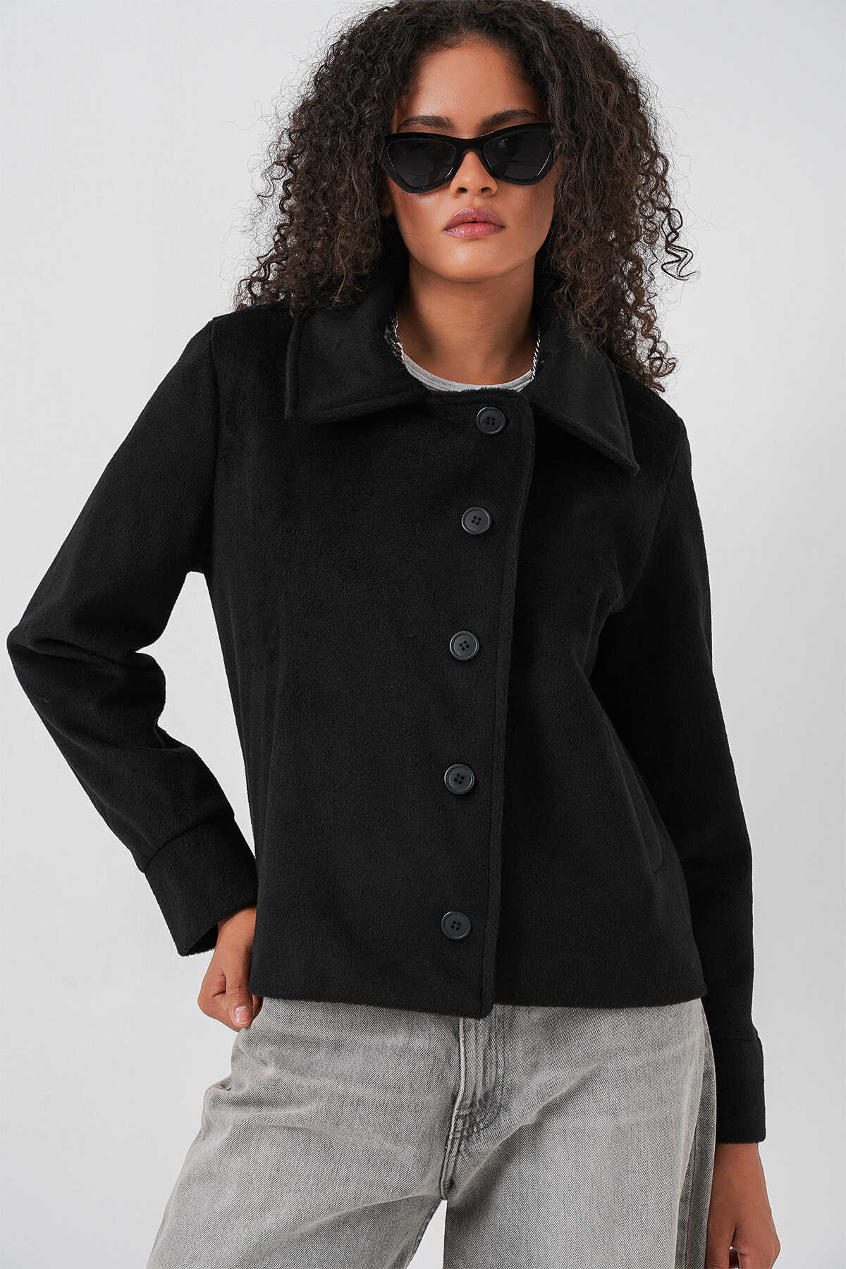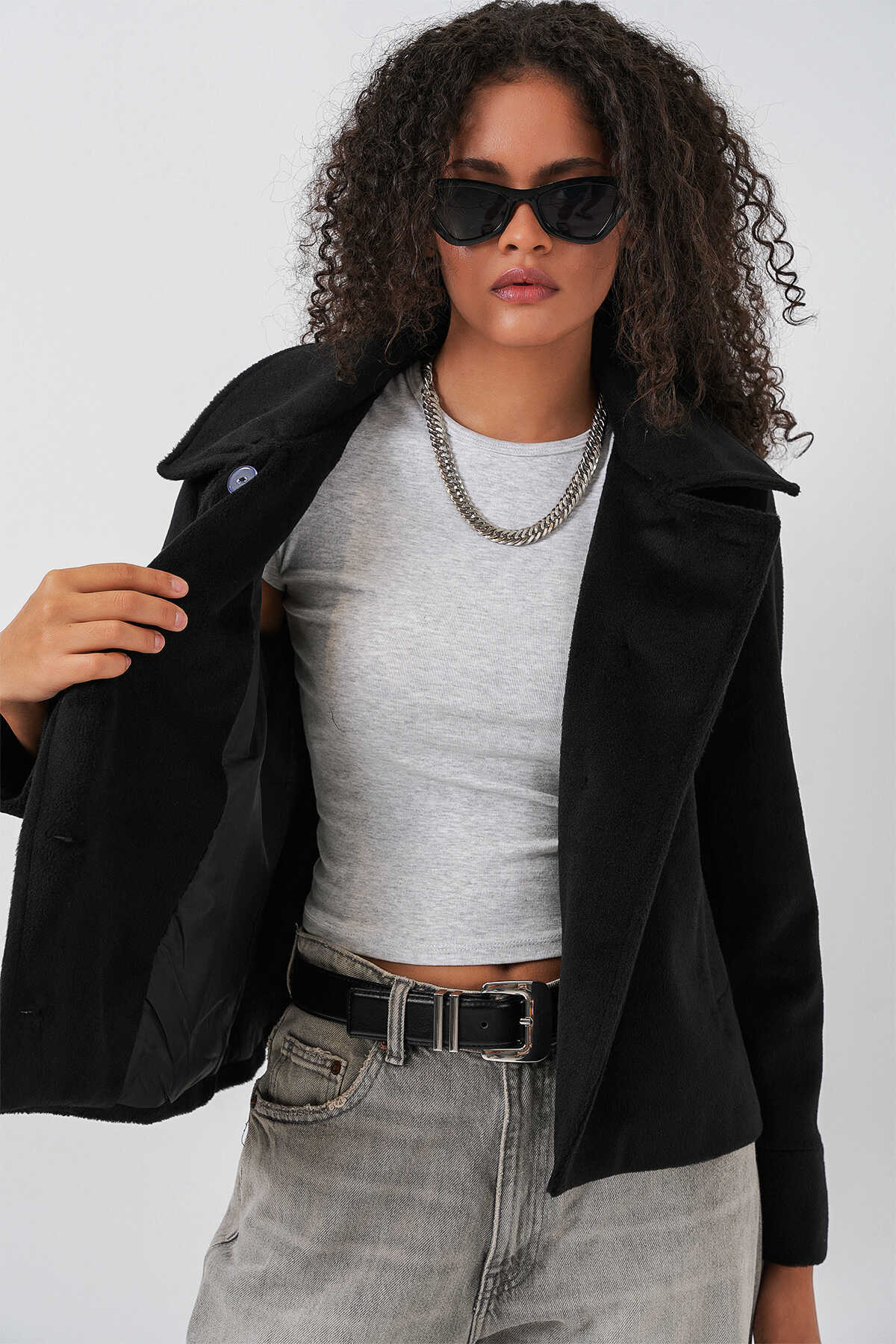 Kadın Oversize Astarlı Kısa Kaşe Ceket 0726 - Siyah