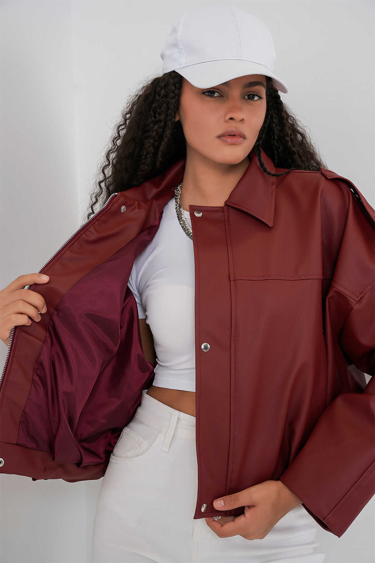 Kadin Oversize Deri Ceket 1055