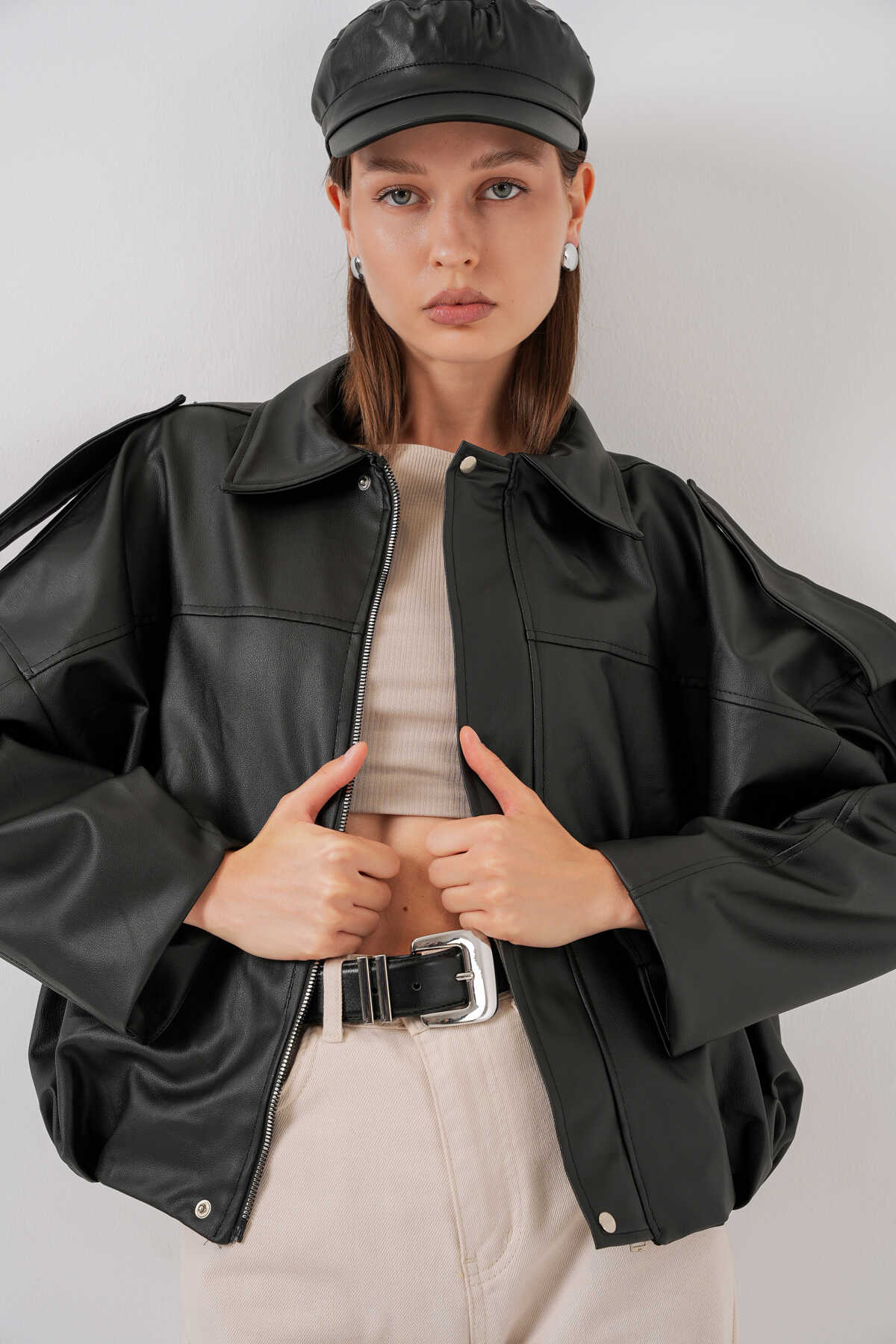 Kadin Oversize Deri Ceket 1055