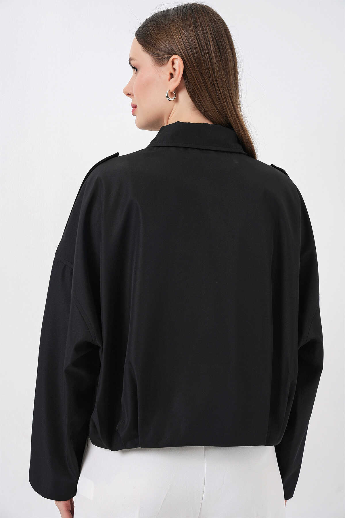 Kadın Oversize Kısa Ceket 0732 - Siyah - Kombin