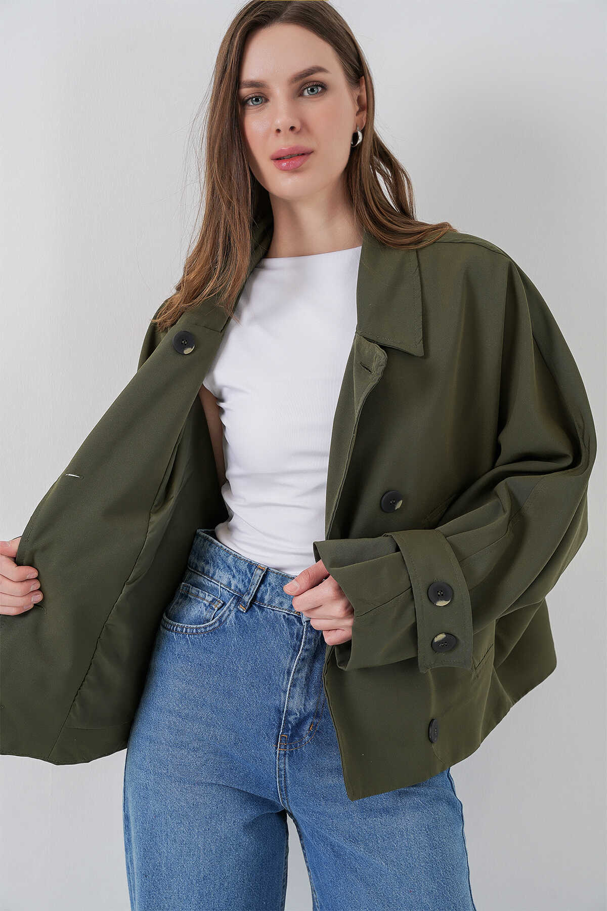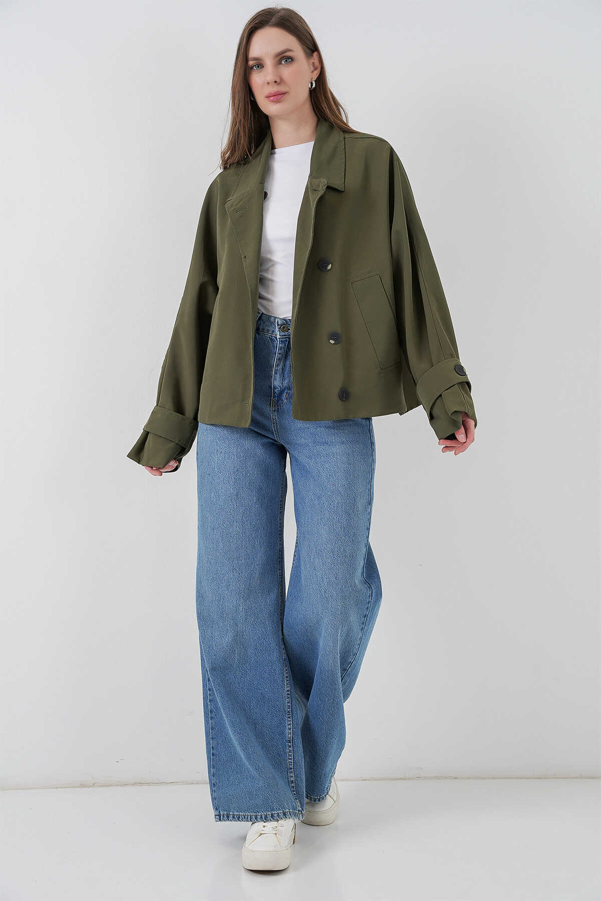 Kadın Oversize Kısa Trençkot 5977 - Haki - Kombin