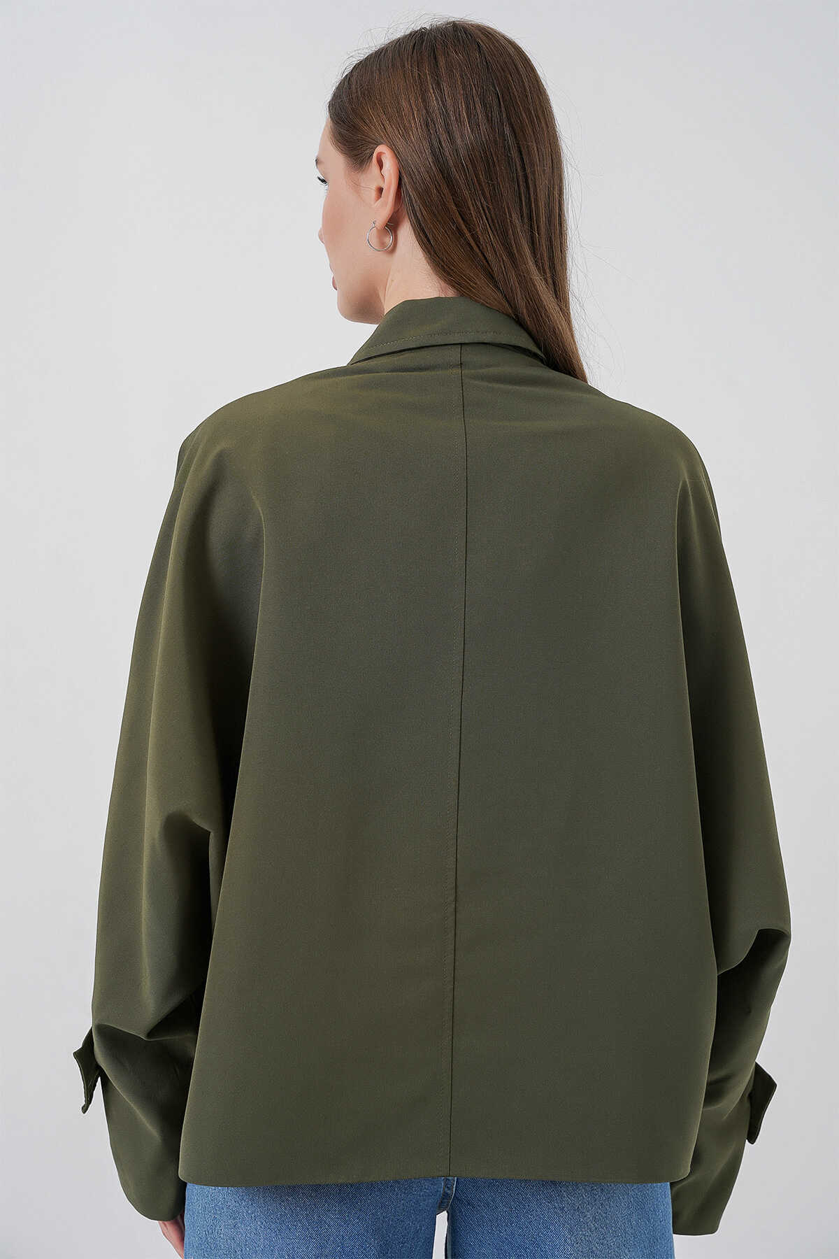 Kadın Oversize Kısa Trençkot 5977 - Haki