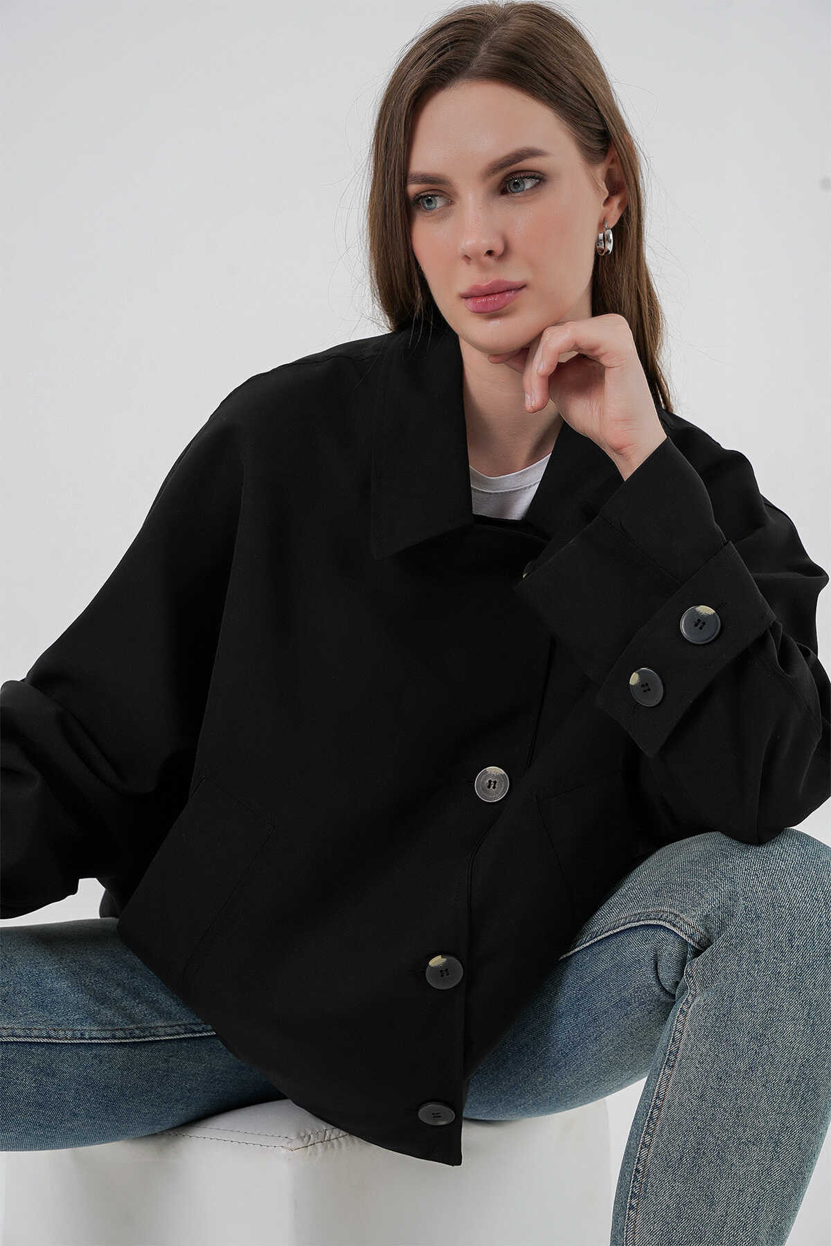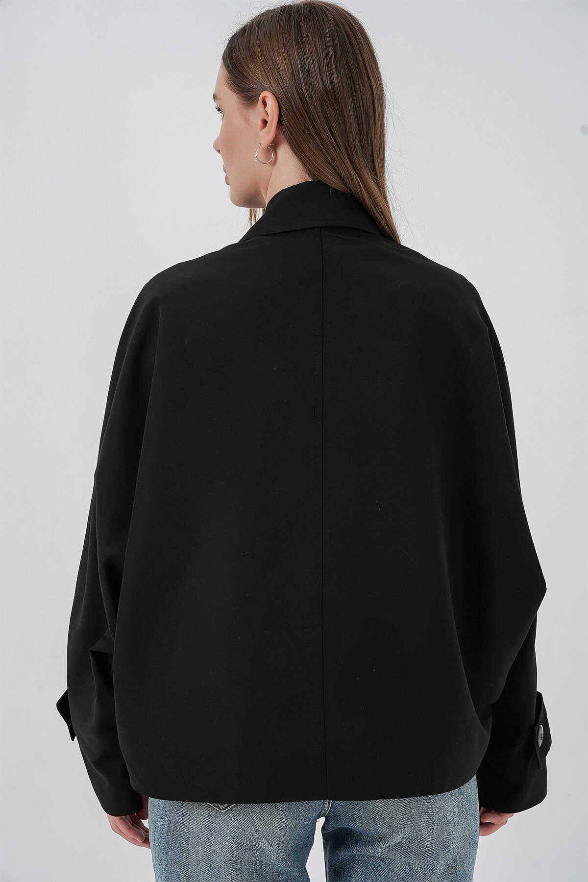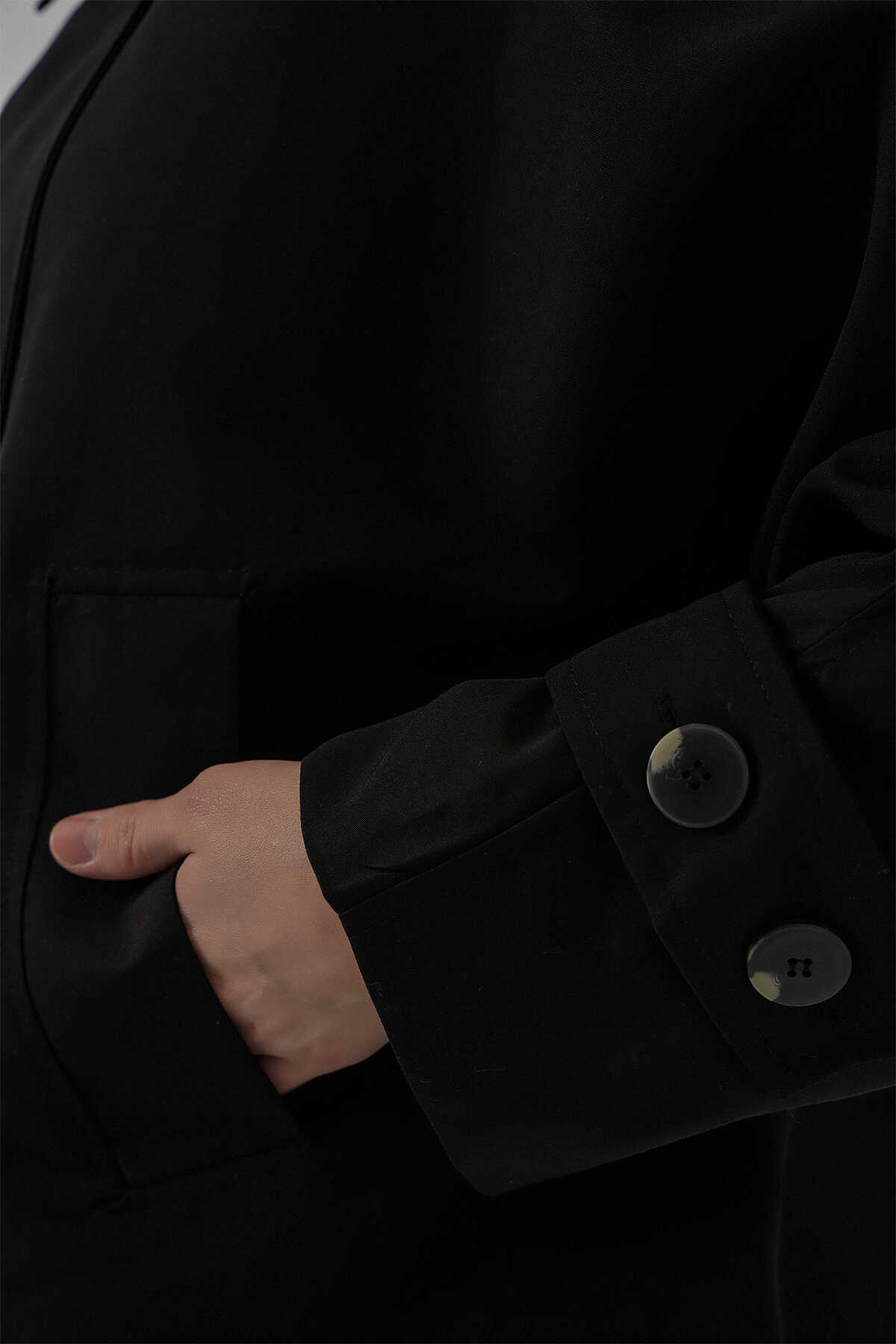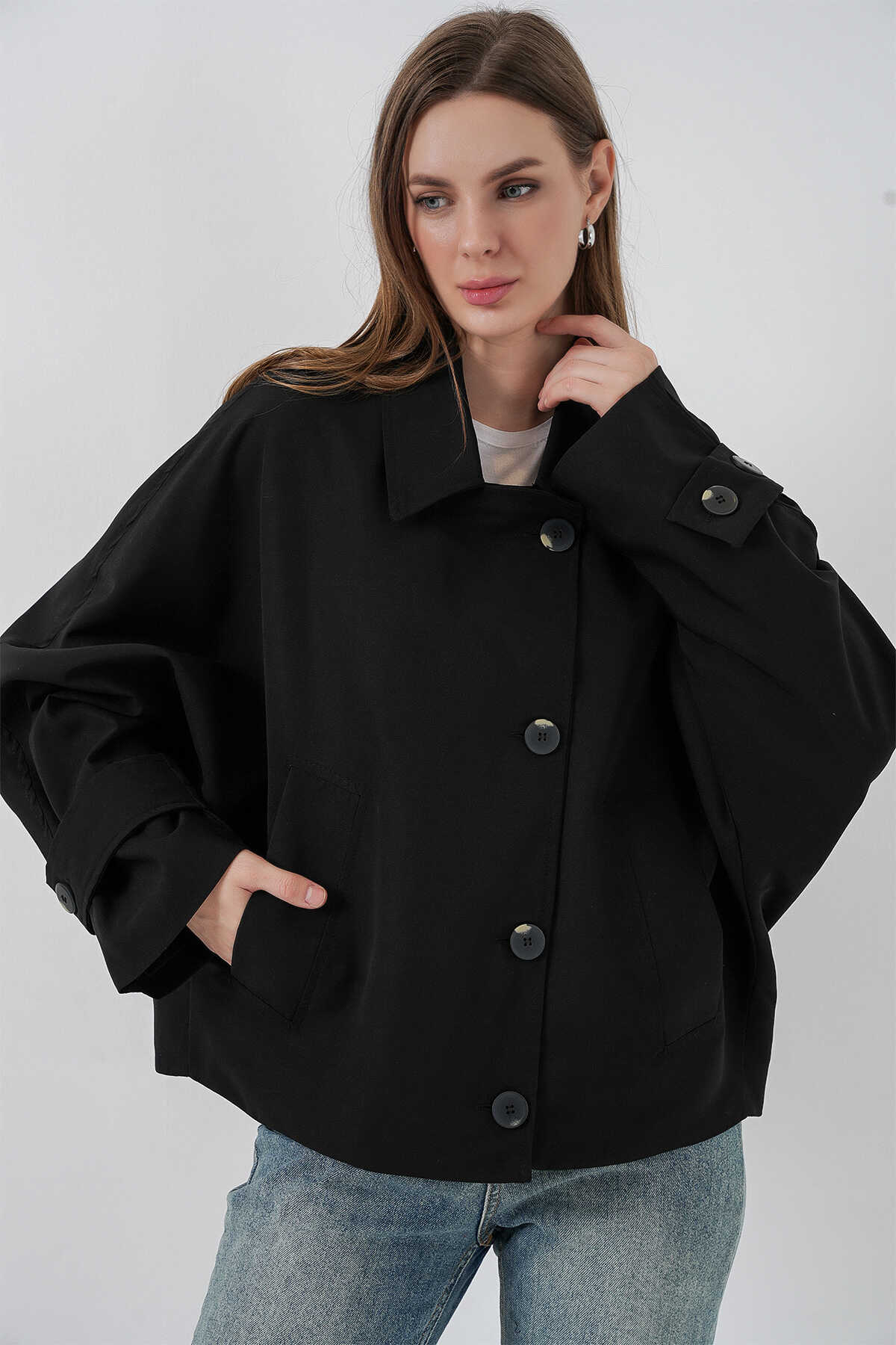 Kadın Oversize Kısa Trençkot 5977 - Siyah - Kombin