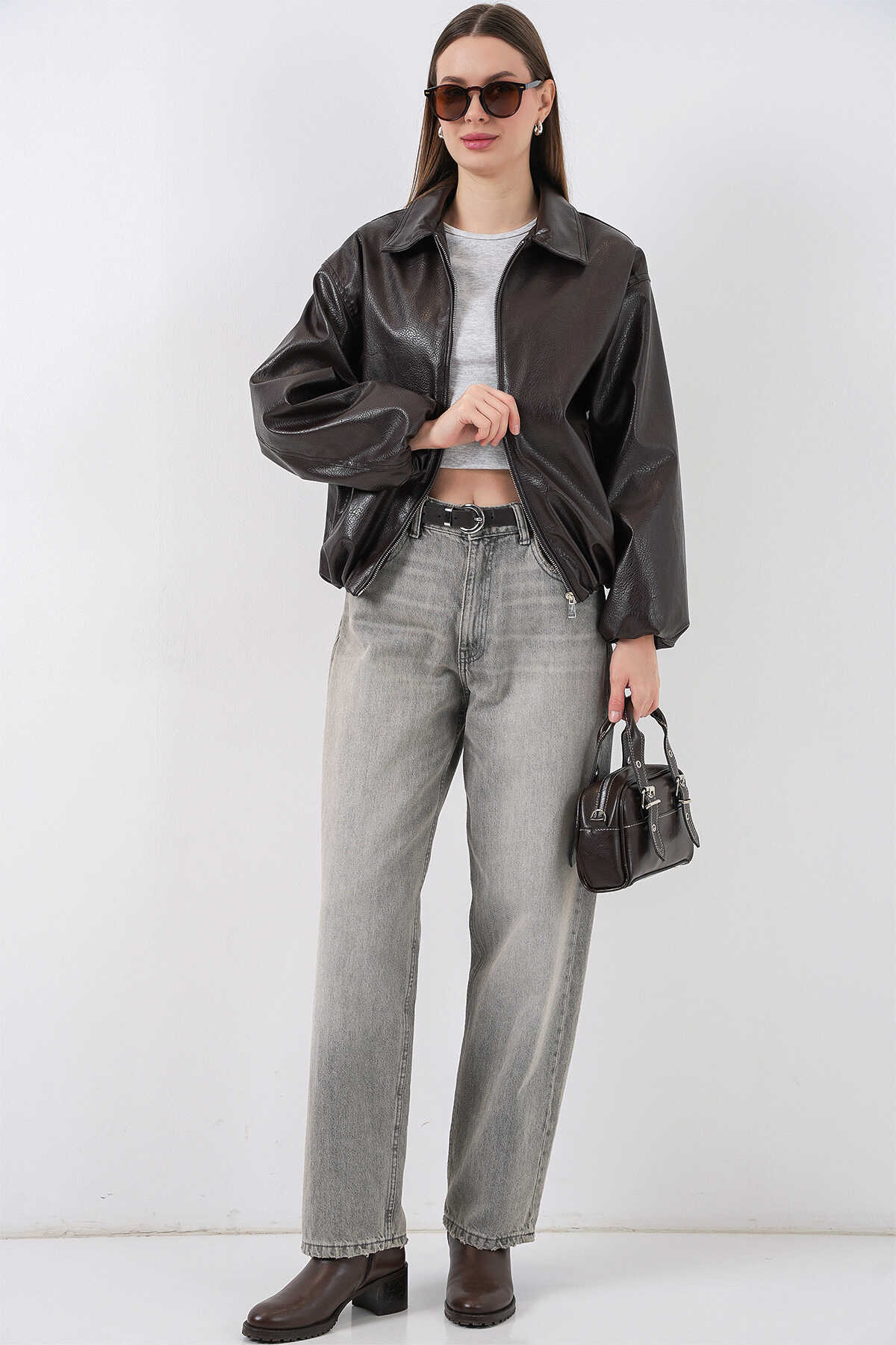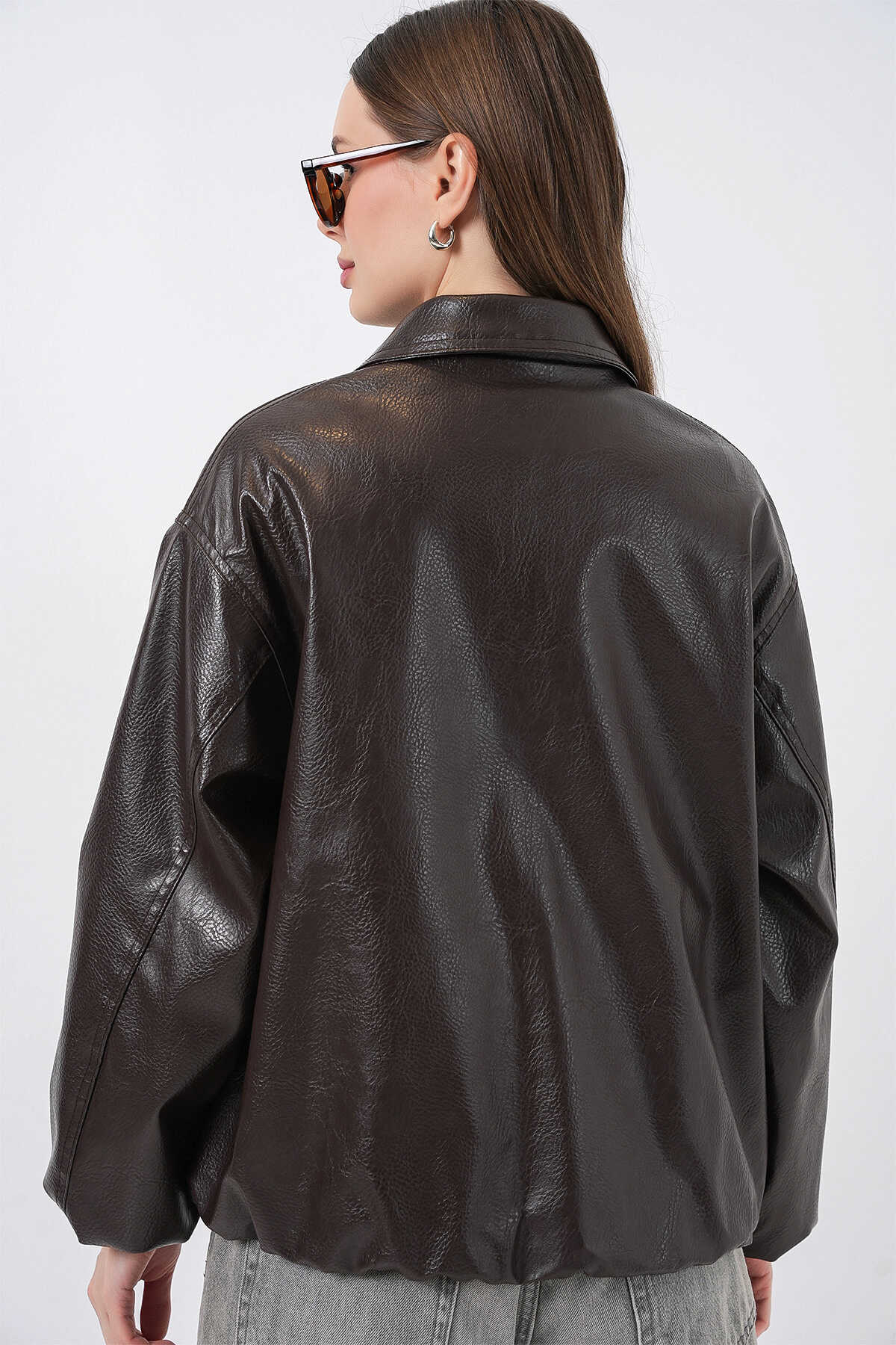 Kadin Oversize Suni Deri Ceket 1049