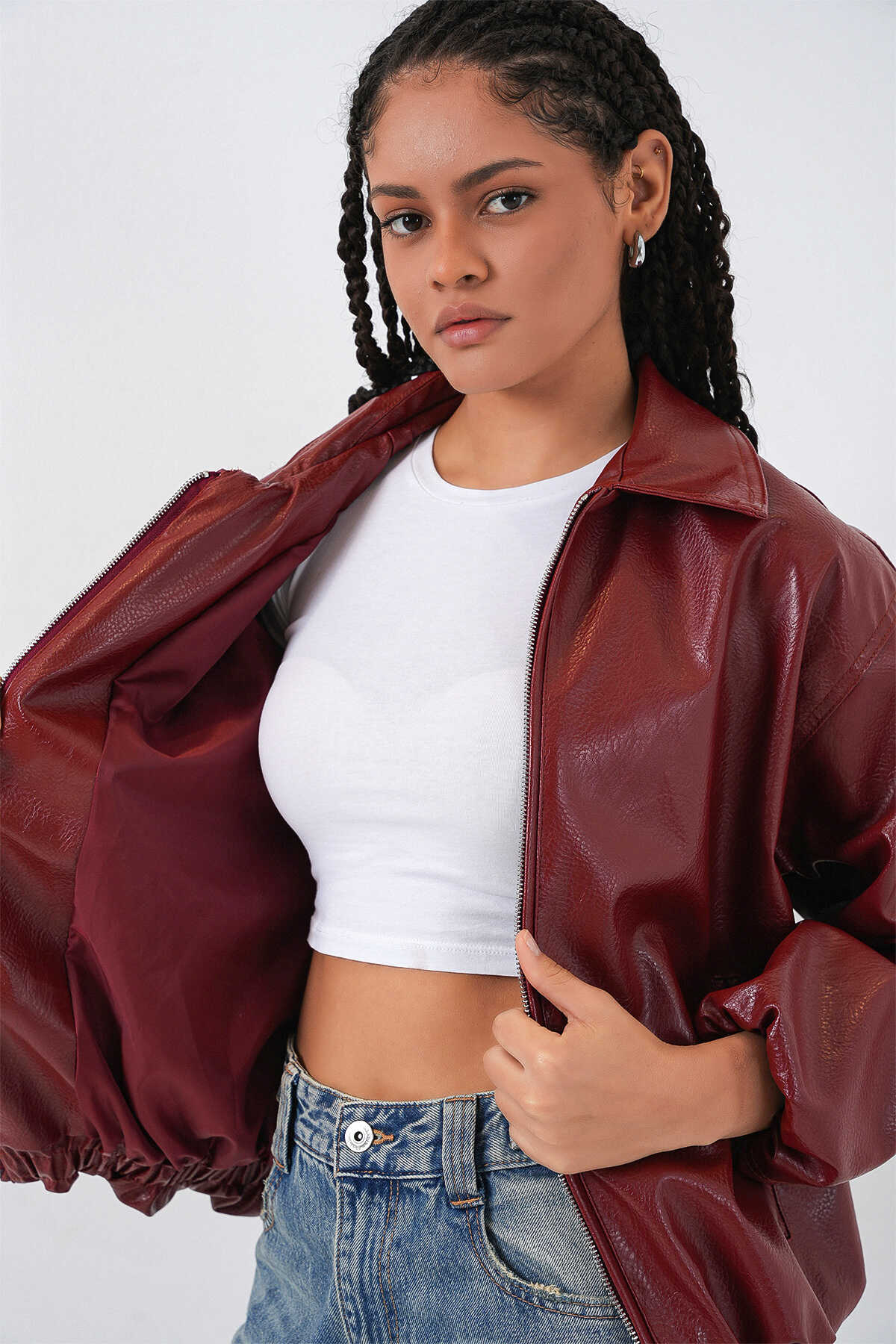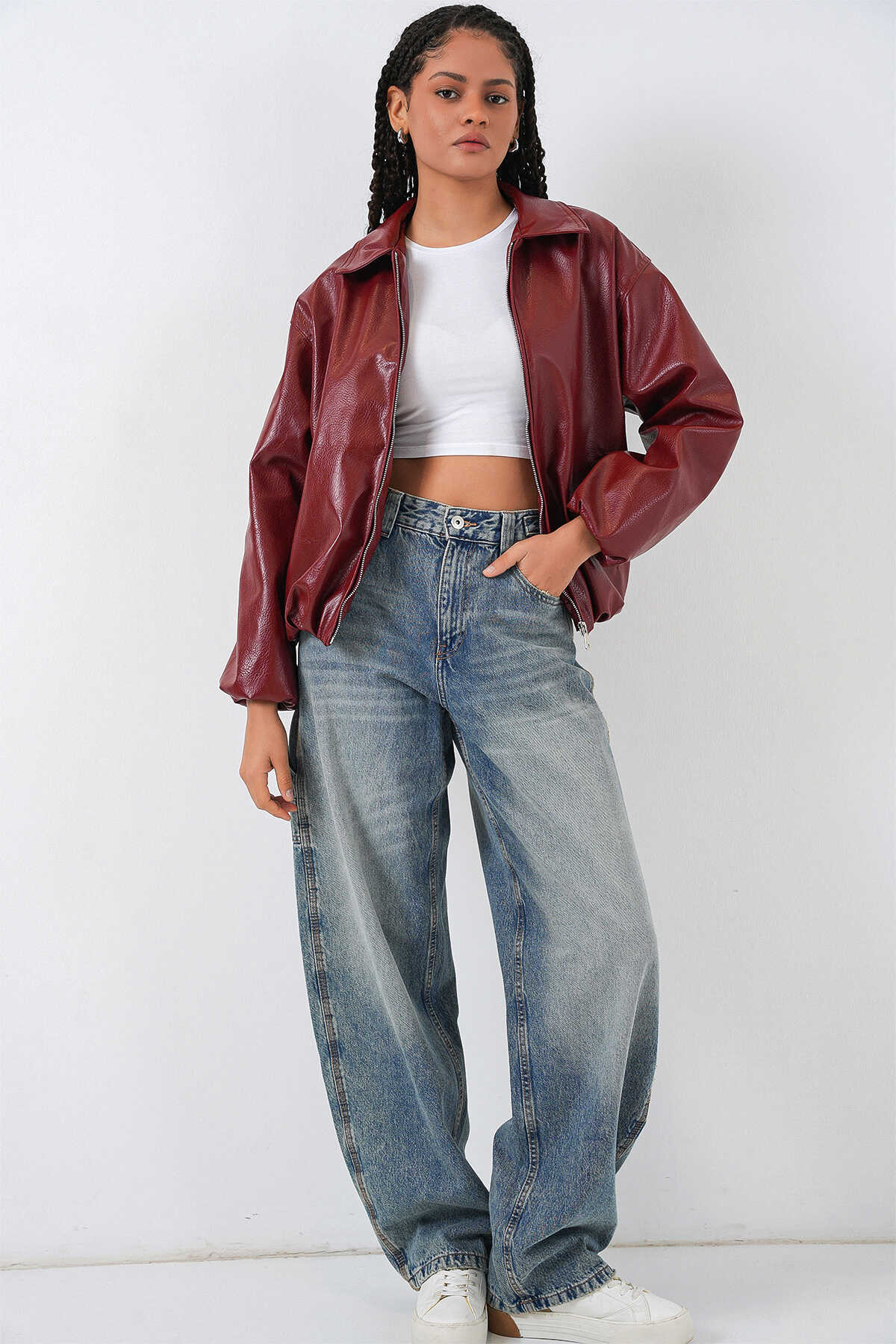 Kadin Oversize Suni Deri Ceket 1049