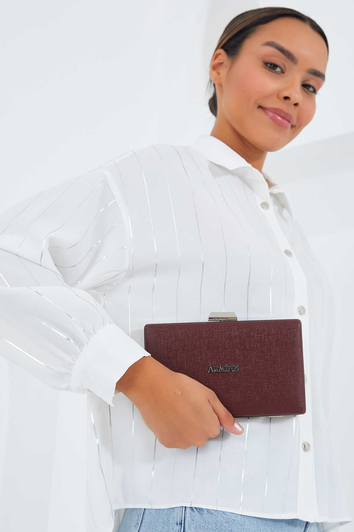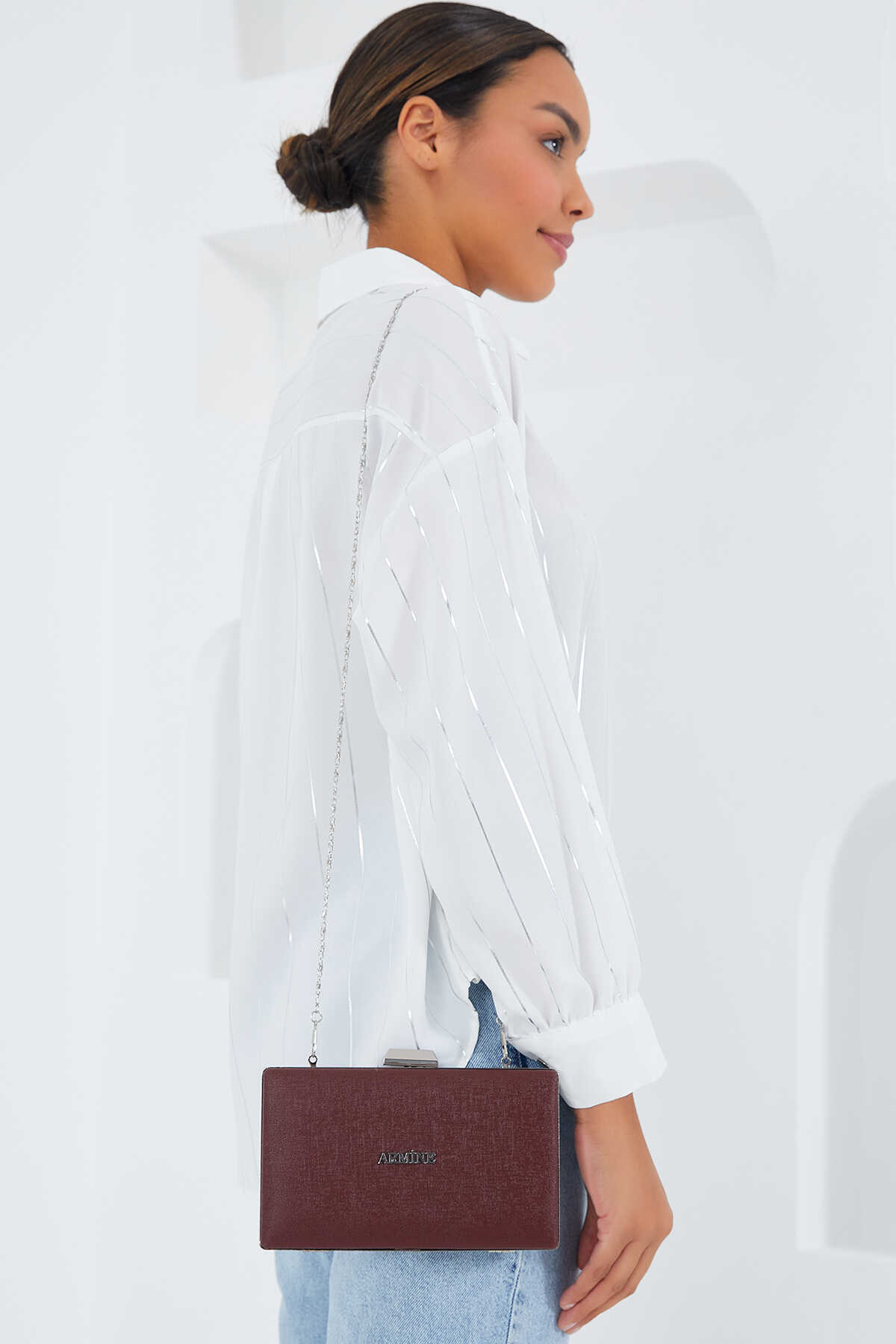 Armine Kadın Parlak Bordo Abiye Clutch Çanta 010155 - Kombin
