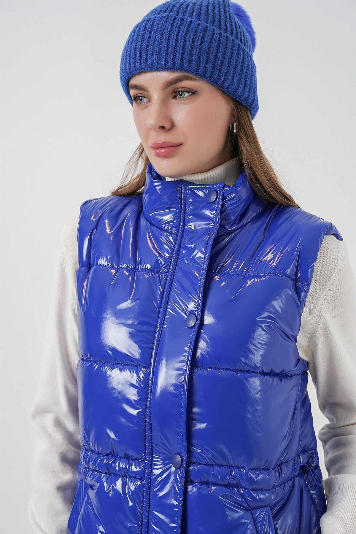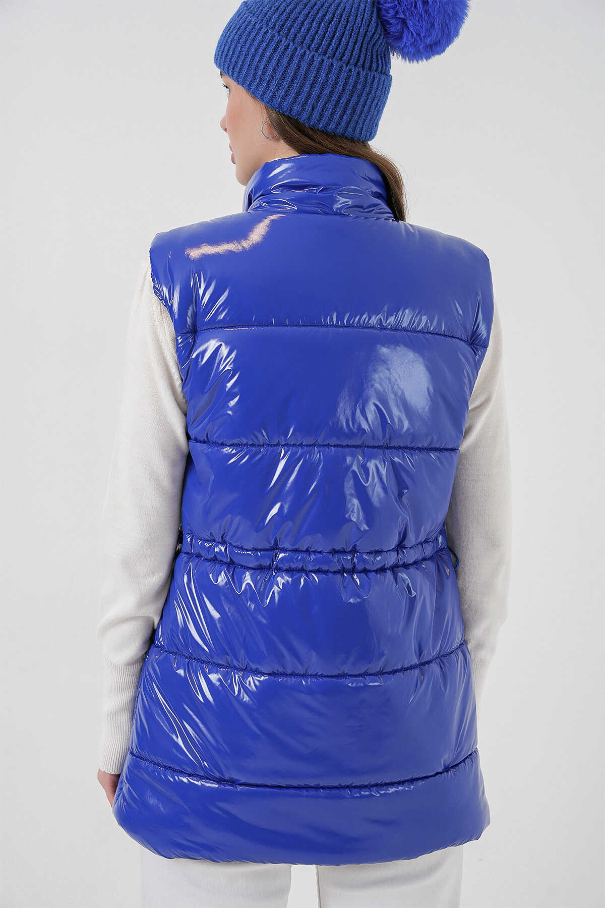 Kadın Parlak Şişme Yelek 5218 - Saks - Kombin